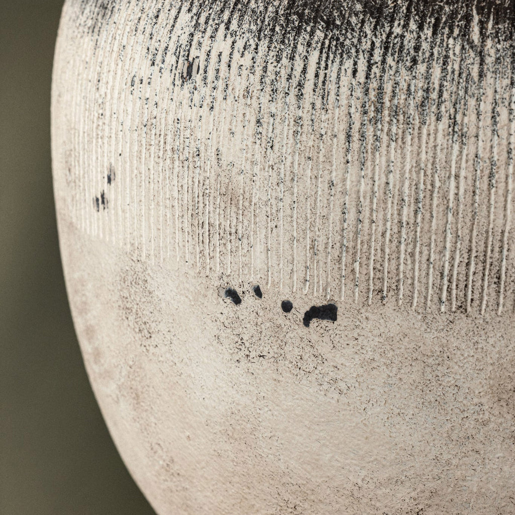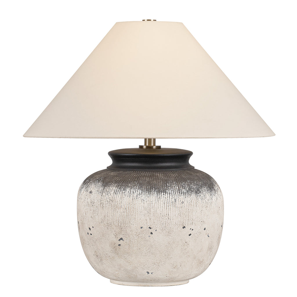Inspired by Lauren's love of the Calabria table lamp by Troy Lighting, Unearthed channels the character of antique pottery with its textured, gesso-like finish and weathered form. Painterly ridges and hand-chipped details give the ceramic base the feel of a timeworn artifact. A white linen shade and subtle Patina Brass accents complete the look, bringing a grounded sense of history and artistry to any space.