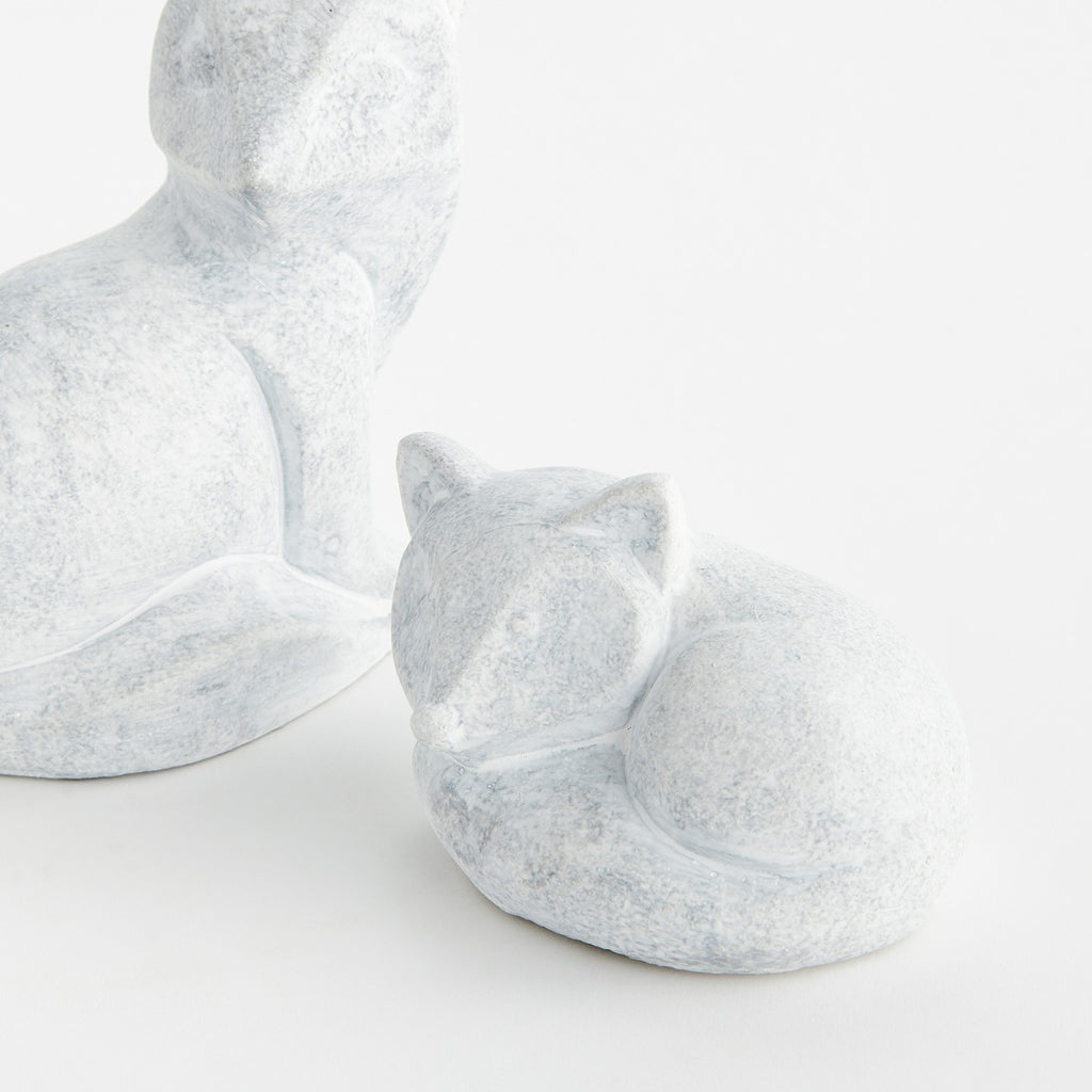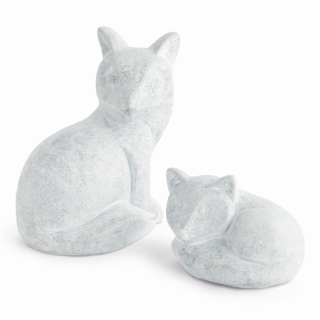 The Lazing Foxes, Set of 2 is a decorative home accent designed to elevate your space. Crafted from concrete, finished in white, it brings texture, warmth, and timeless style to any room. This sweet little duo of lazing fox sculptures is made of concrete and finished in a whitewash. A charming accent for the modern gardener.