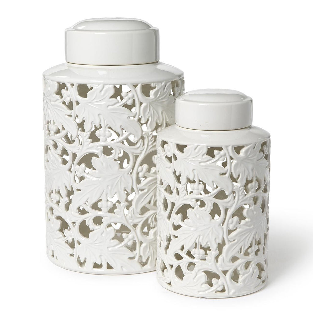 • Hand cut Intricate leaf silhouette design ceramic jars