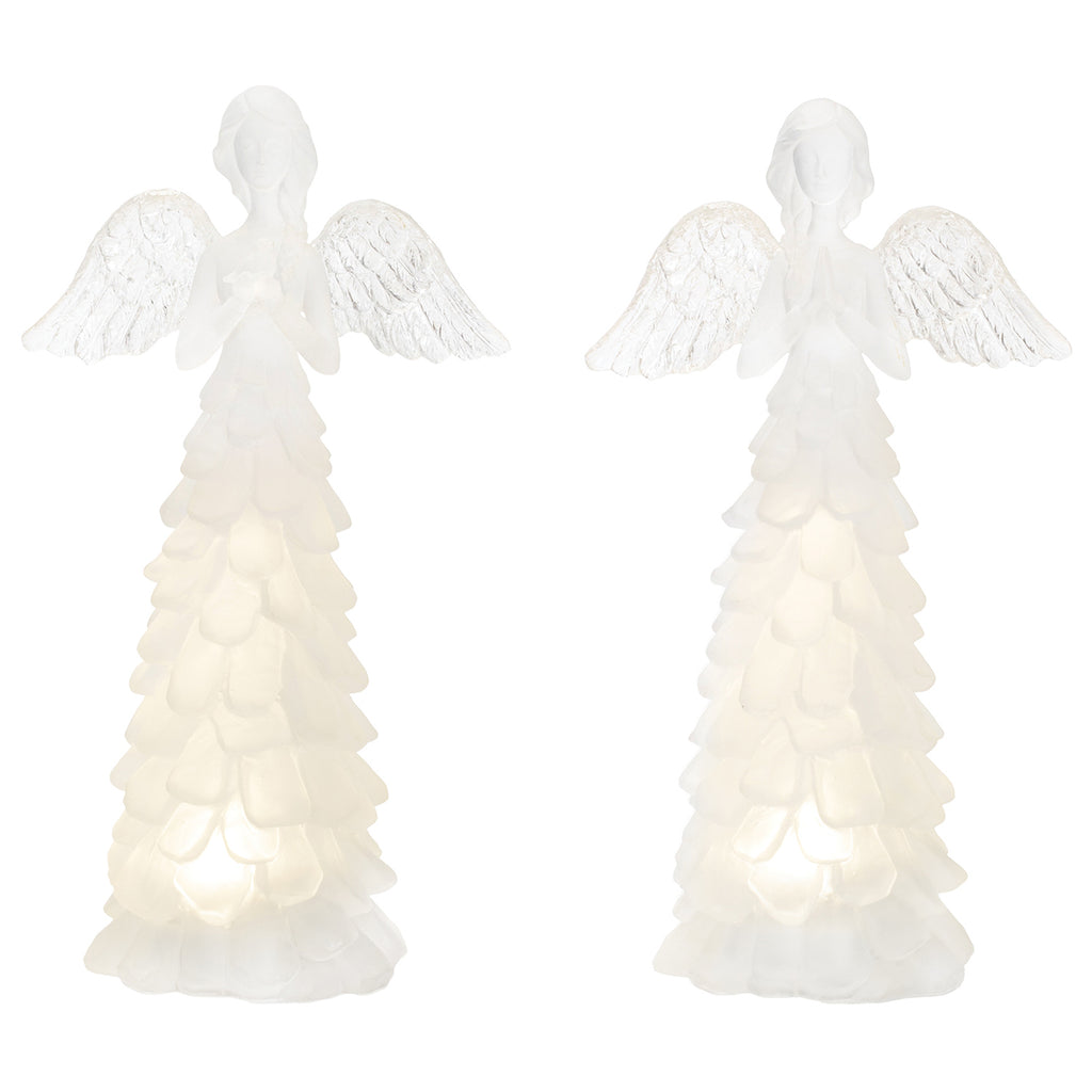 Bring serenity into your home this spring season with a stunning set of Angel Figurines. Featuring four pieces with two assorted designs, this set is a great fit for your country cottage or garden chic style of decor. The cool white tones paired with the chic frosted finish and LED lighted accents are perfect to create a memorable display. The quality polyresin composition is sure to endure for seasons to come. Display the pieces on a covered porch or patio, or arrange them alongside your indoor floral arrangements to make a statement in your home!