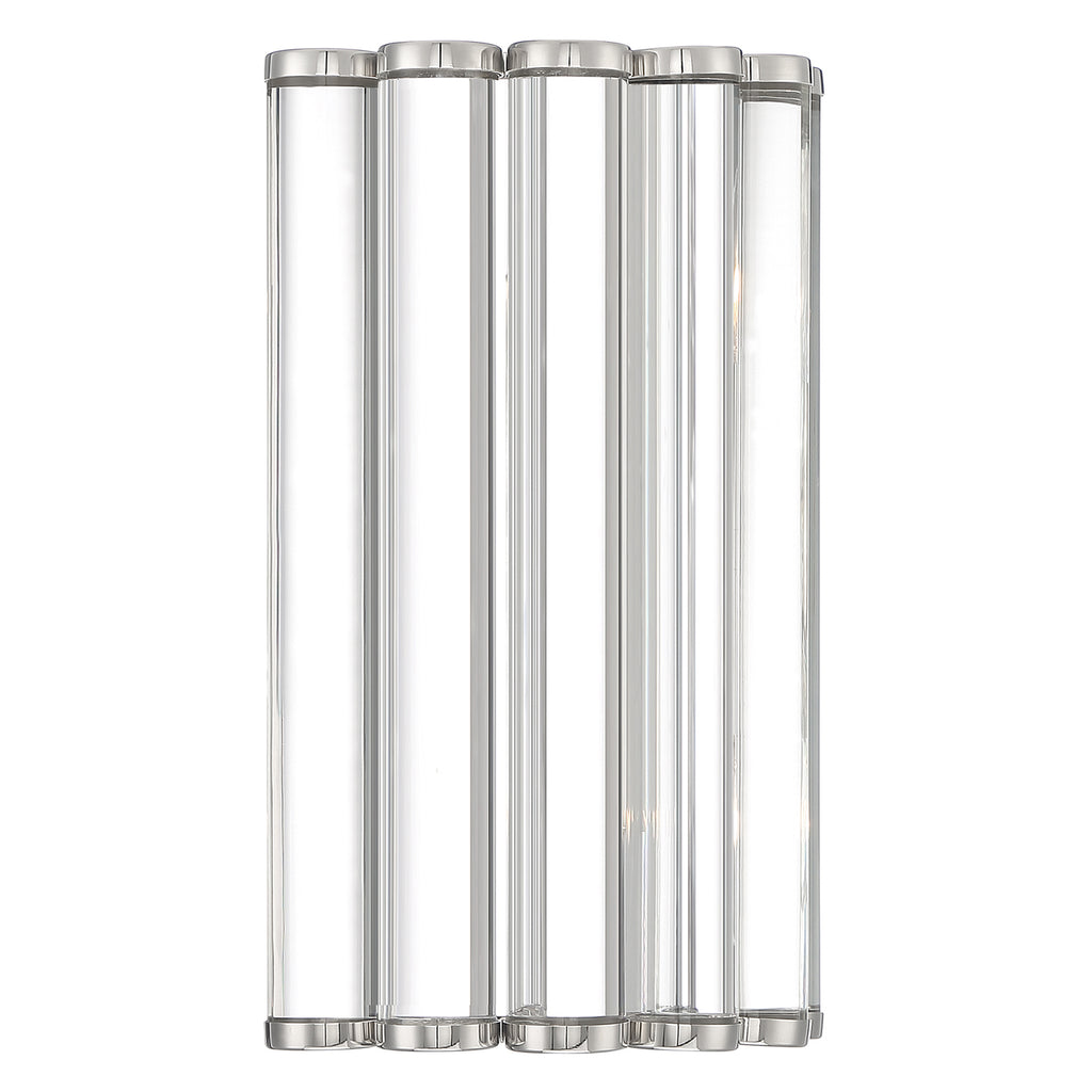 Crystorama is known for its standout lighting, which is exceptional in quality and design. From traditional all-crystal designs to transitional lighting collections, Crystorama offers styles that will match any décor and are always in fashion. The Crystorama Elliot collection, designed by Libby Langdon, is a sleek and almost masculine collection featuring a series of chunky glass rods and a polished nickel frame to highlight the shape. The fixture's view from below is as important as what it looks like from the side. The metalwork follows the shape of the circular rods creating a scallop pattern. The filtered light bounces between the glass rods and gives off a beautiful glow. Architectural in nature, the Elliot is a modern take on a crystal-style chandelier.