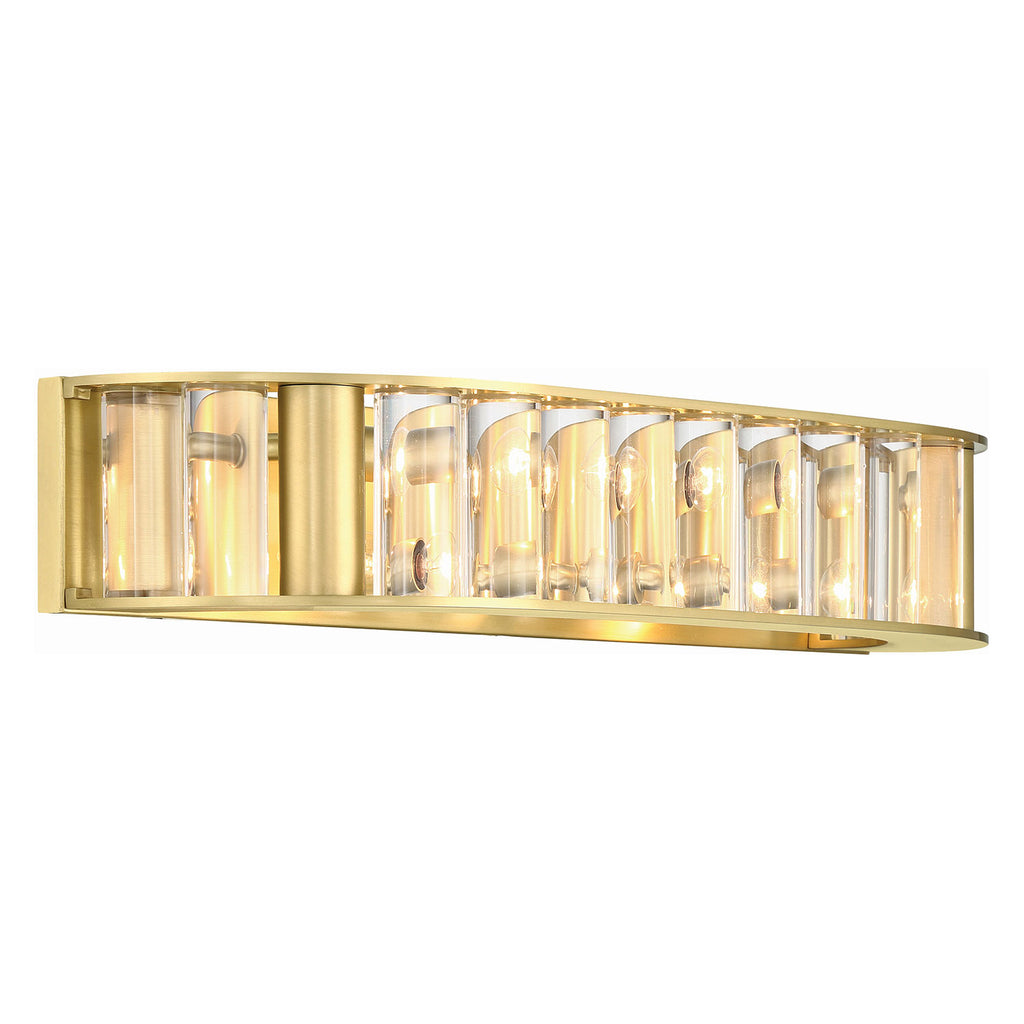 Crystorama is known for its standout lighting, which is exceptional in quality and design. From traditional all-crystal designs to transitional lighting collections, Crystorama offers styles that will match any décor and are always in fashion. The Four Light Farris Bathroom vanity is a stunning addition to your bathroom decor. Crafted with solid thick glass rods and a sleek metal frame in a Vibrant Gold brushed finish, this fixture exudes elegance and sophistication. Farris perfectly blends contemporary and classic design with a modern twist. Farris collection features a versatile transitional design. A marriage of traditional and contemporary equate a classic and timeless design that focuses on simplicity and sophistication. The crystals from the Farris collection, feature a modern and updated way to accentuate any room. Aged Brass metal finish is treated to look aged and have a rich hue. This shade adds a luxurious touch to any room and is perfect for modern and contemporary settings.