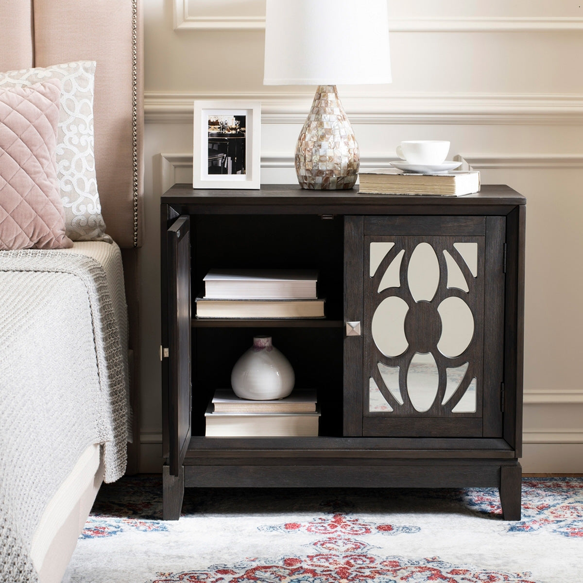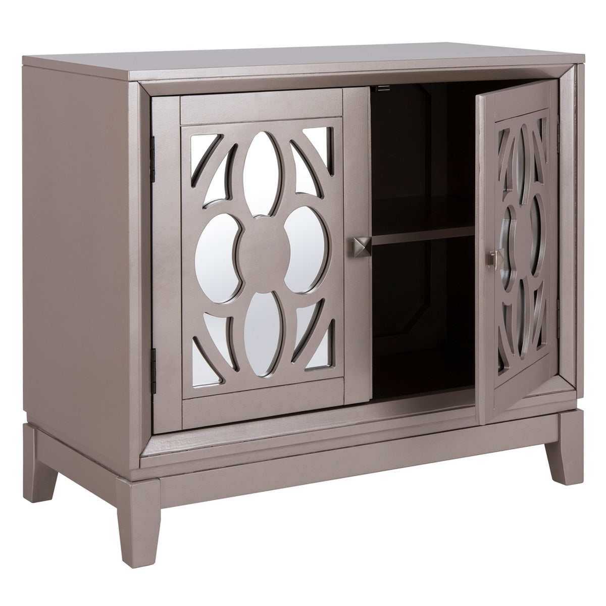 A reflection of impeccable taste, this chic contemporary chest instantly upgrades any living room. Finely crafted with acacia wood, its design features a gorgeous pattern on its beautiful mirrored front. Its stylish storage makes it a designer favorite.
