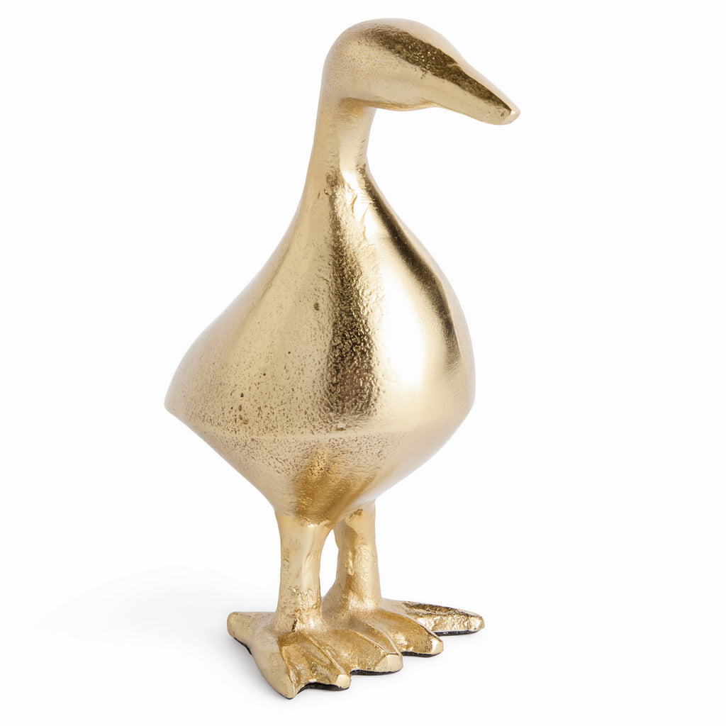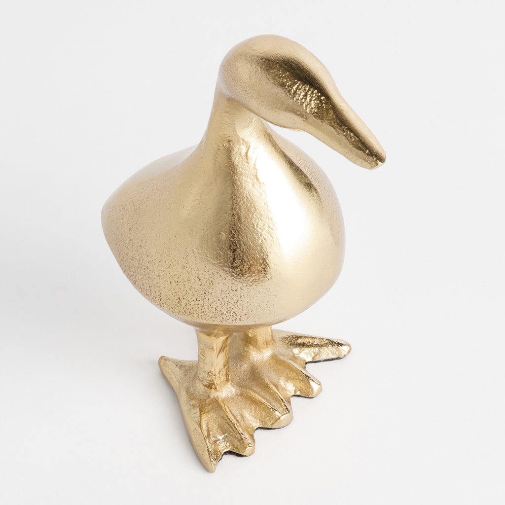 The Little Duck Sculpture is a decorative home accent designed to elevate your space. Crafted from cast aluminum, finished in gold, it brings texture, warmth, and timeless style to any room. This darling little duck has our hearts. Made of a cast aluminum and finished in a champagne gold, it is a great conversation piece for home office, study or book shelf.
