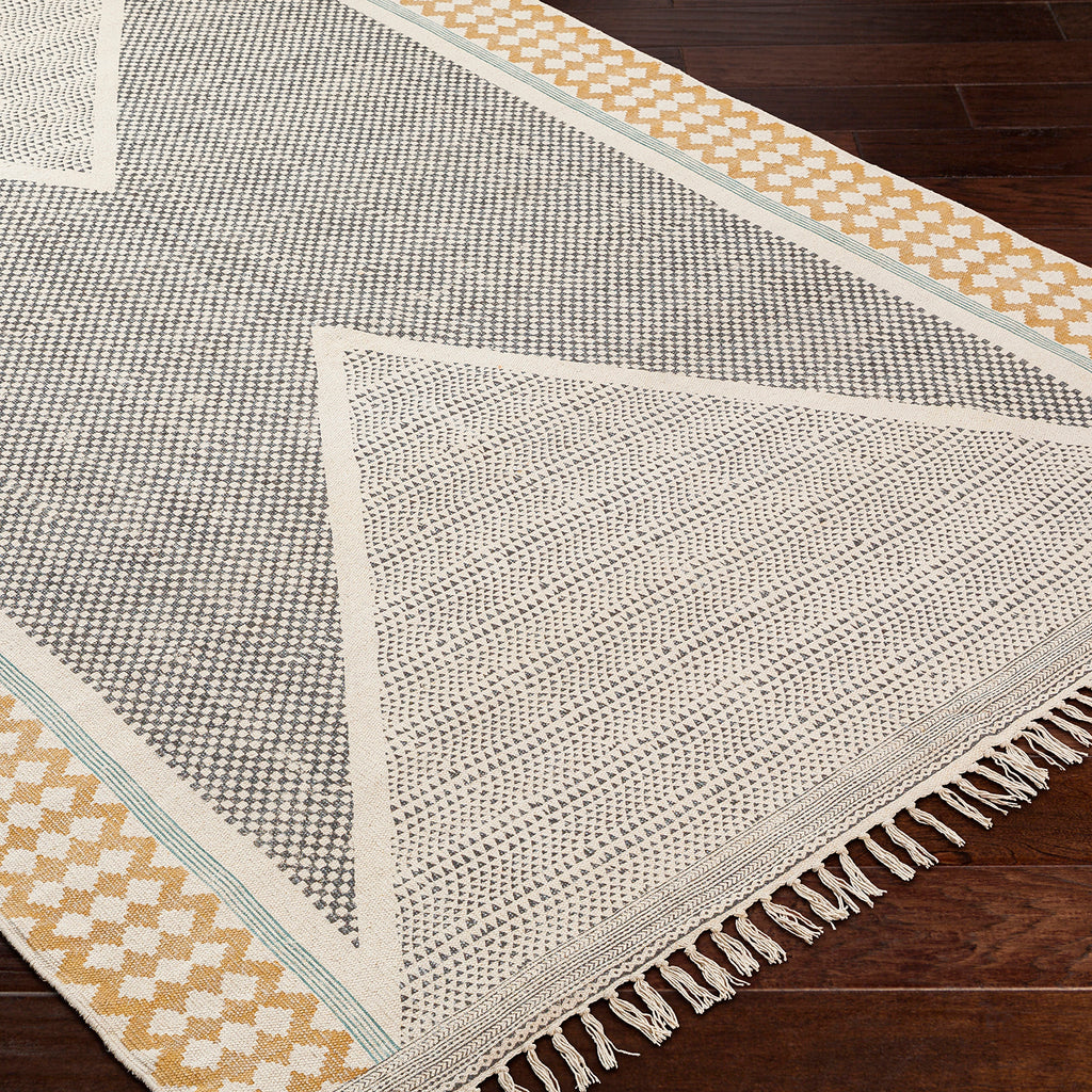 The July Collection features compelling global inspired designs brimming with elegance and grace! The perfect addition for any home, these pieces will add eclectic charm to any room! The meticulously woven construction of these pieces boasts durability and will provide natural charm into your decor space. Made with Cotton in India, and has No Pile. Spot Clean Only.