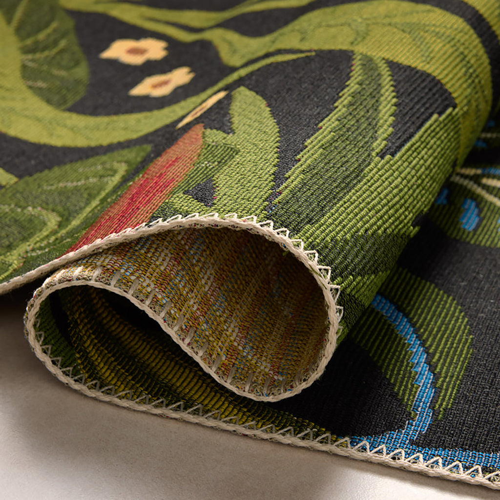 Romantic and maximalist, the Botanical Collection goes all-in on large-scale flowers with a poppy, vintage fabric style. These power-loomed area rugs are made of mixed materials in Egypt for both indoor and outdoor use, where all they need is a rinse with a hose to clean when needed.