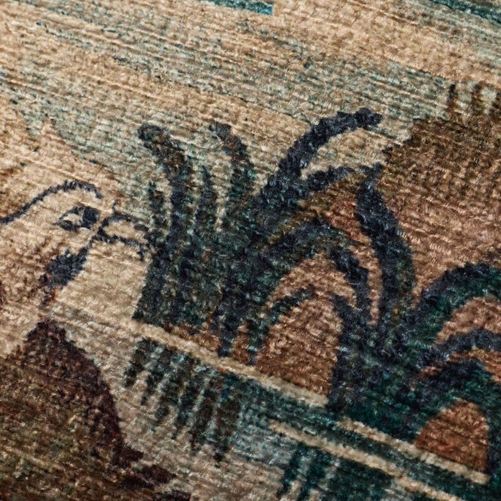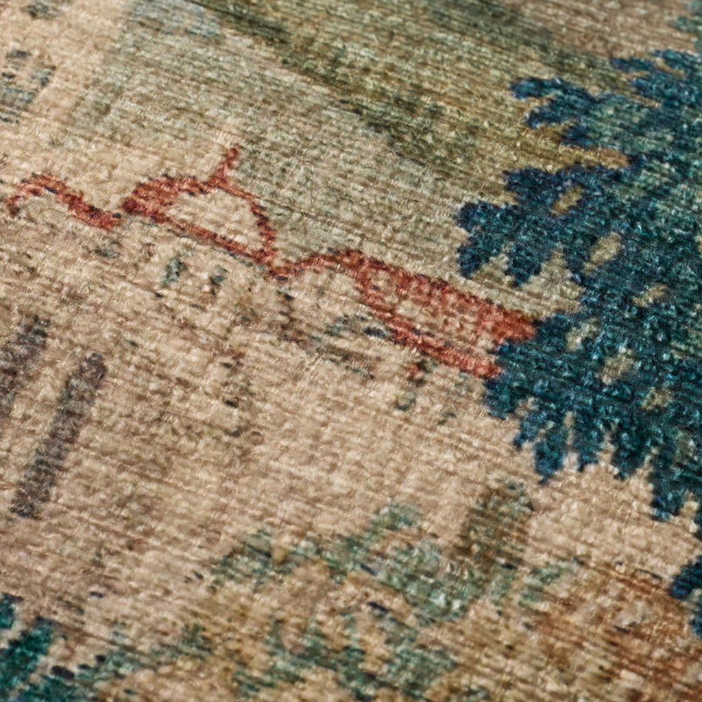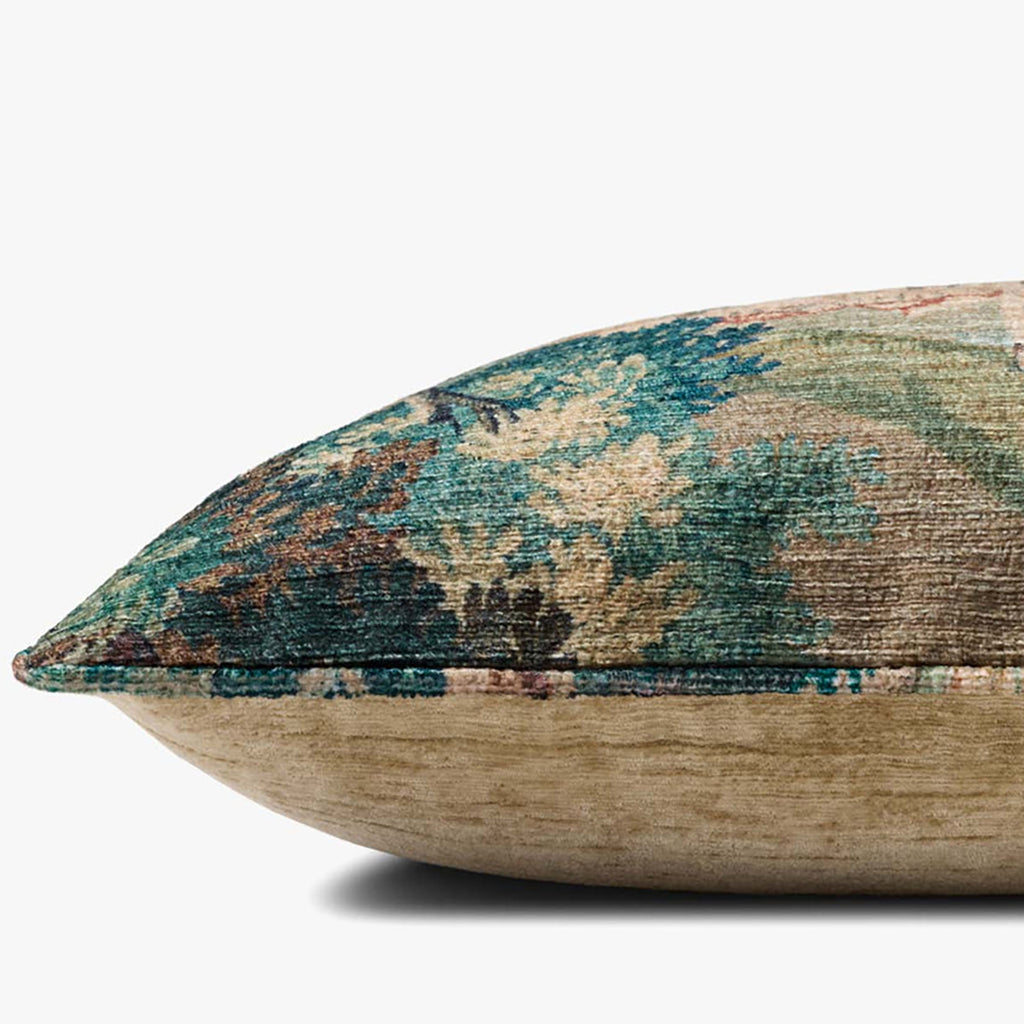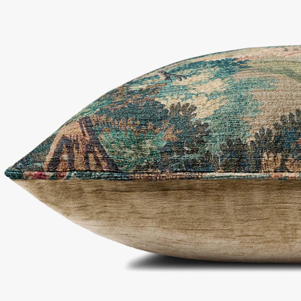 This tapestry-inspired throw pillow adds a romantic elegance to contemporary home decor. The green, forest-patterned accent pillow measures 22” x 22”, a versatile size for living rooms, bedrooms, and more. Woven of easy-to-clean polyester.