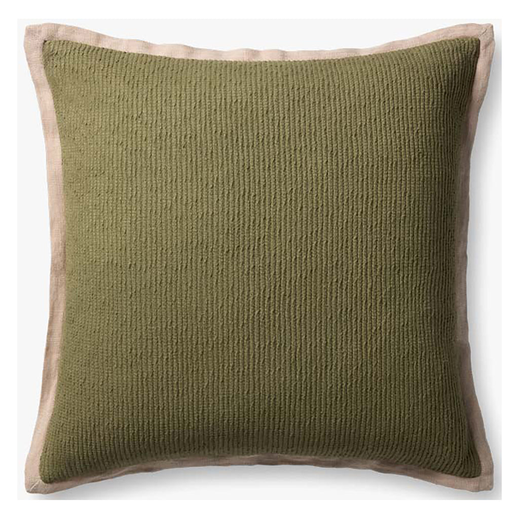This light blue throw pillow with beige flange edges adds a nubby, cozy texture to your home decor. The accent pillow is a versatile layering piece for living rooms, bedrooms, and more. The 22” x 22” square pillow is woven in India of cotton and other fibers.
