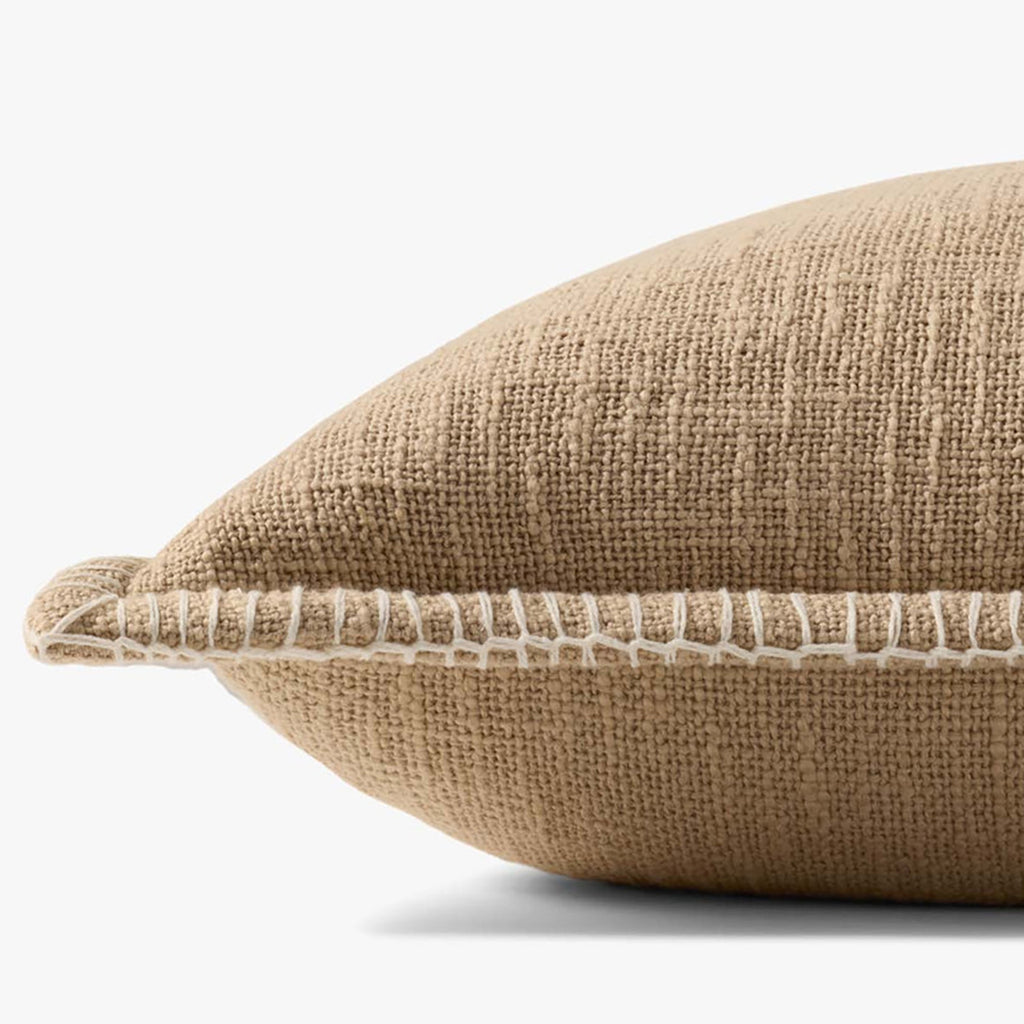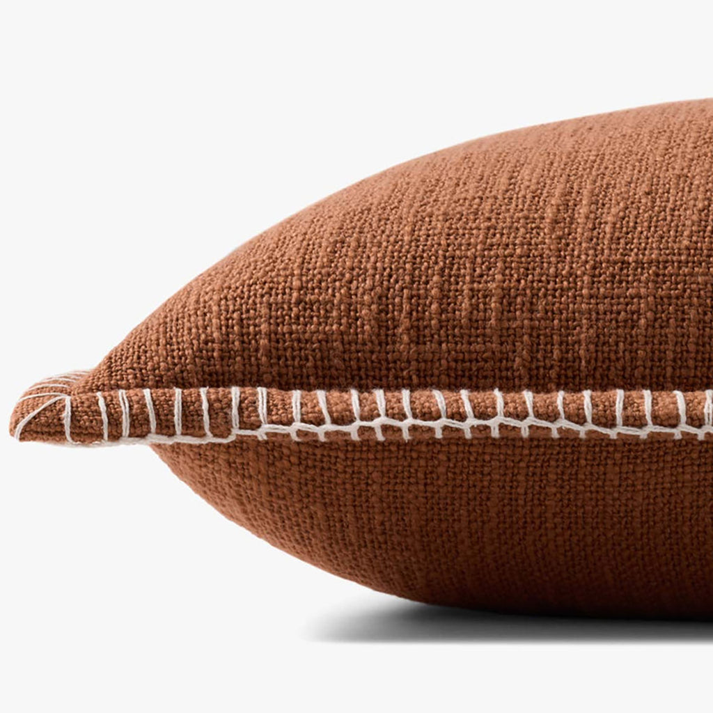 This solid throw pillow features design details that elevate it in a pile: white contrast whipstitched edges, and a gently-textured woven construction. The 22in x 22in square pillow is machine-woven of 100% cotton in India.