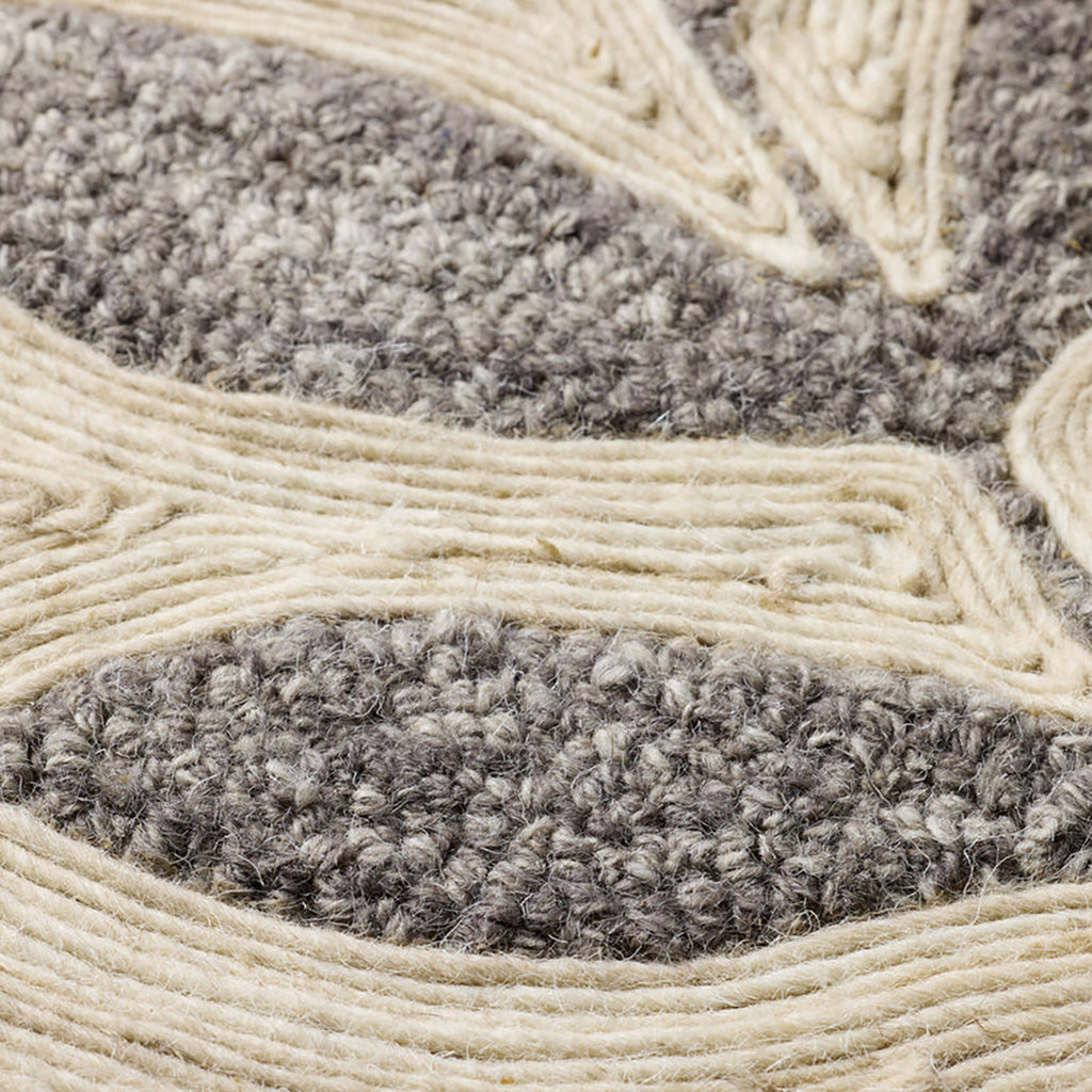 Frond & Fog is a handmade wall art piece with a gray-and-ivory botanical design, a wonderfully textural accent for bohemian or natural home decor. The artwork is crafted in India from wool and custom-framed by Loloi in the USA, measuring 26” x 38”.