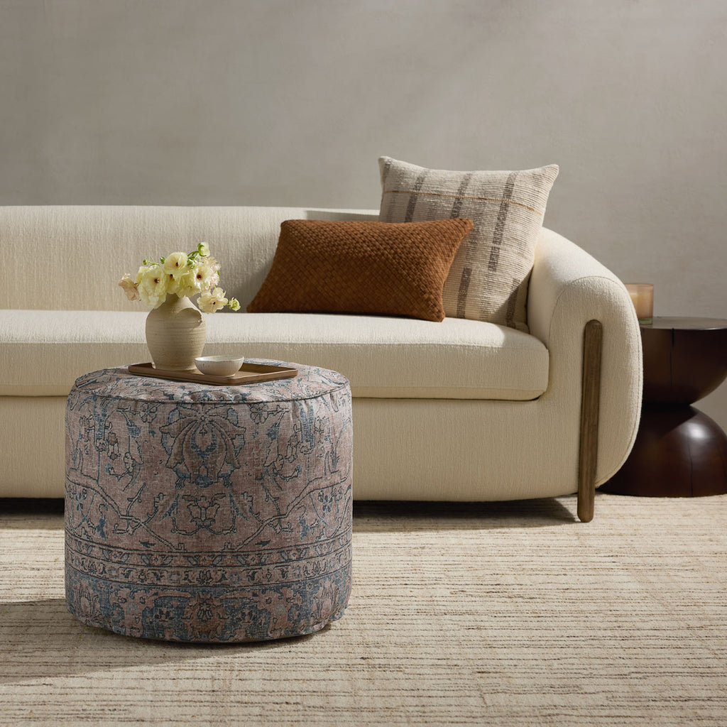 This pouf with a traditional, vintage-inspired design can be used as an accent, an ottoman, or extra seating in your living room or bedroom. The pouf measures 18"W x 18"D x 20"H and is machine-woven of easy-to-clean polyester.