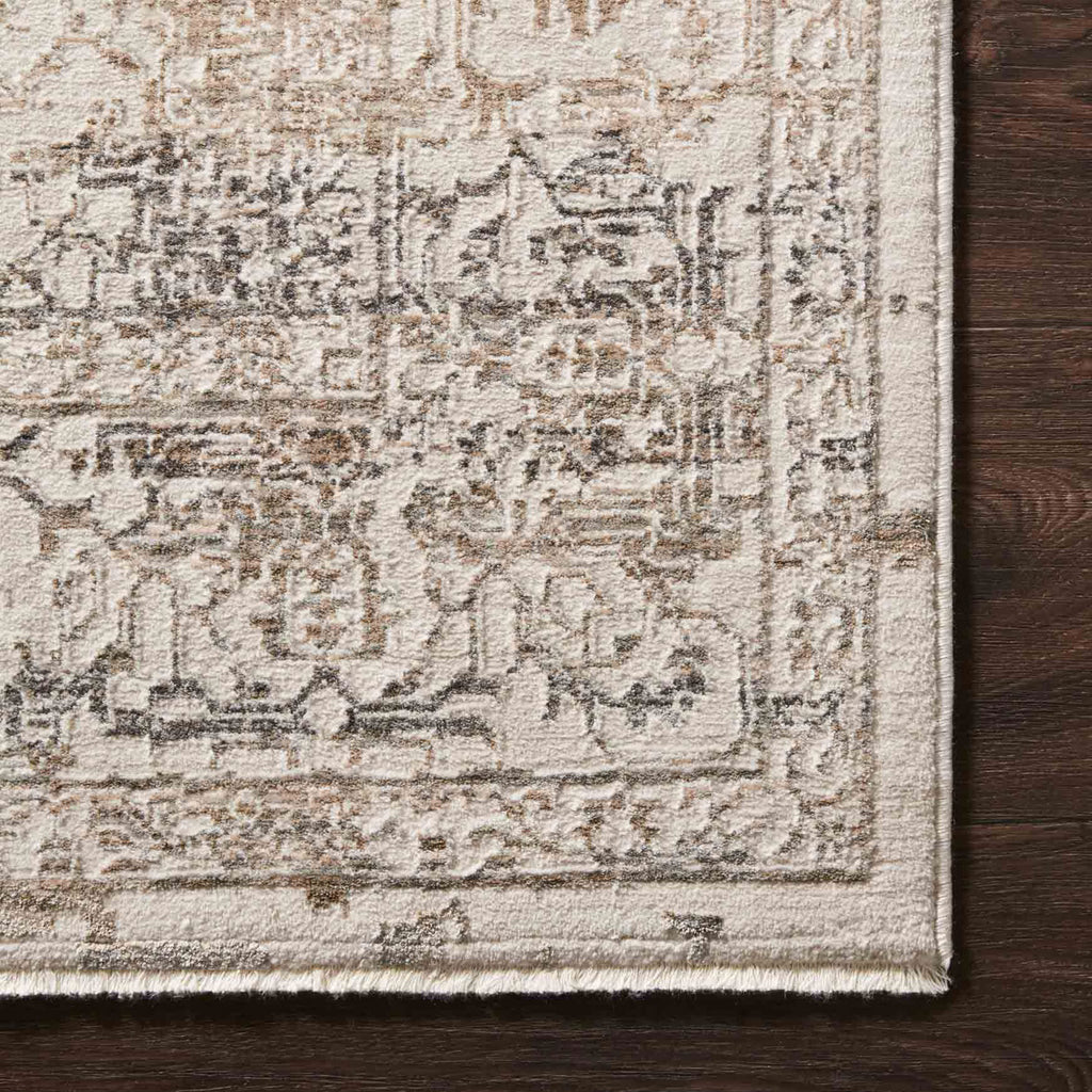Reminiscent of traditional motifs, the Loloi Homage Collection is a neutral floor piece with distressed pattern. Power-loomed of polyester and viscose in Turkey, Homage offers a subtle high-low texture while remaining silky underfoot.