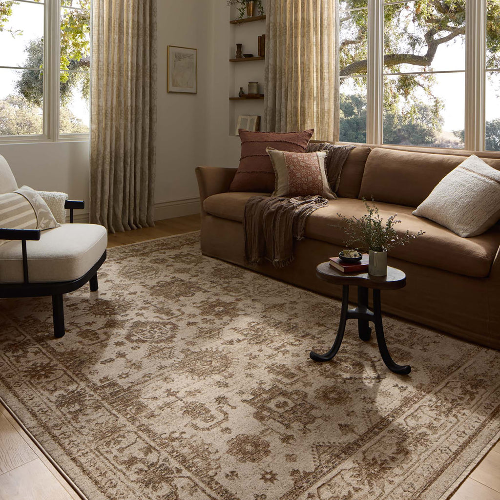 The Loloi Haywood Collection is an easy-to-clean, earth-toned area rug with a subtly distressed traditional design. Haywood is power-loomed of polyester in Turkey, a durable area rug for a living room, bedroom, dining room, or other high-traffic spaces.