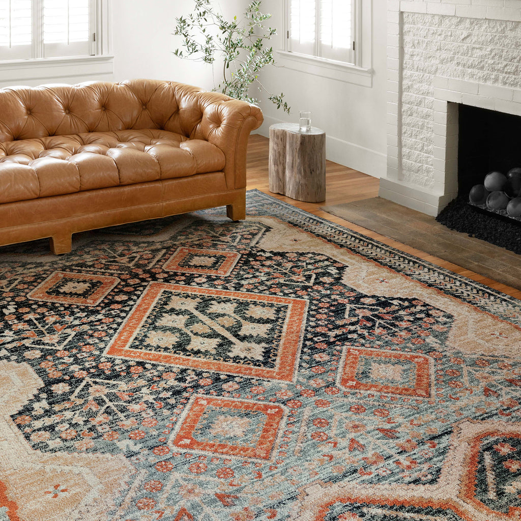 Power-loomed of polyester in Turkey, the Loloi Jocelyn Collection displays antique-inspired motifs, modernized by a rich color palette and a construction designed to withstand foot traffic.