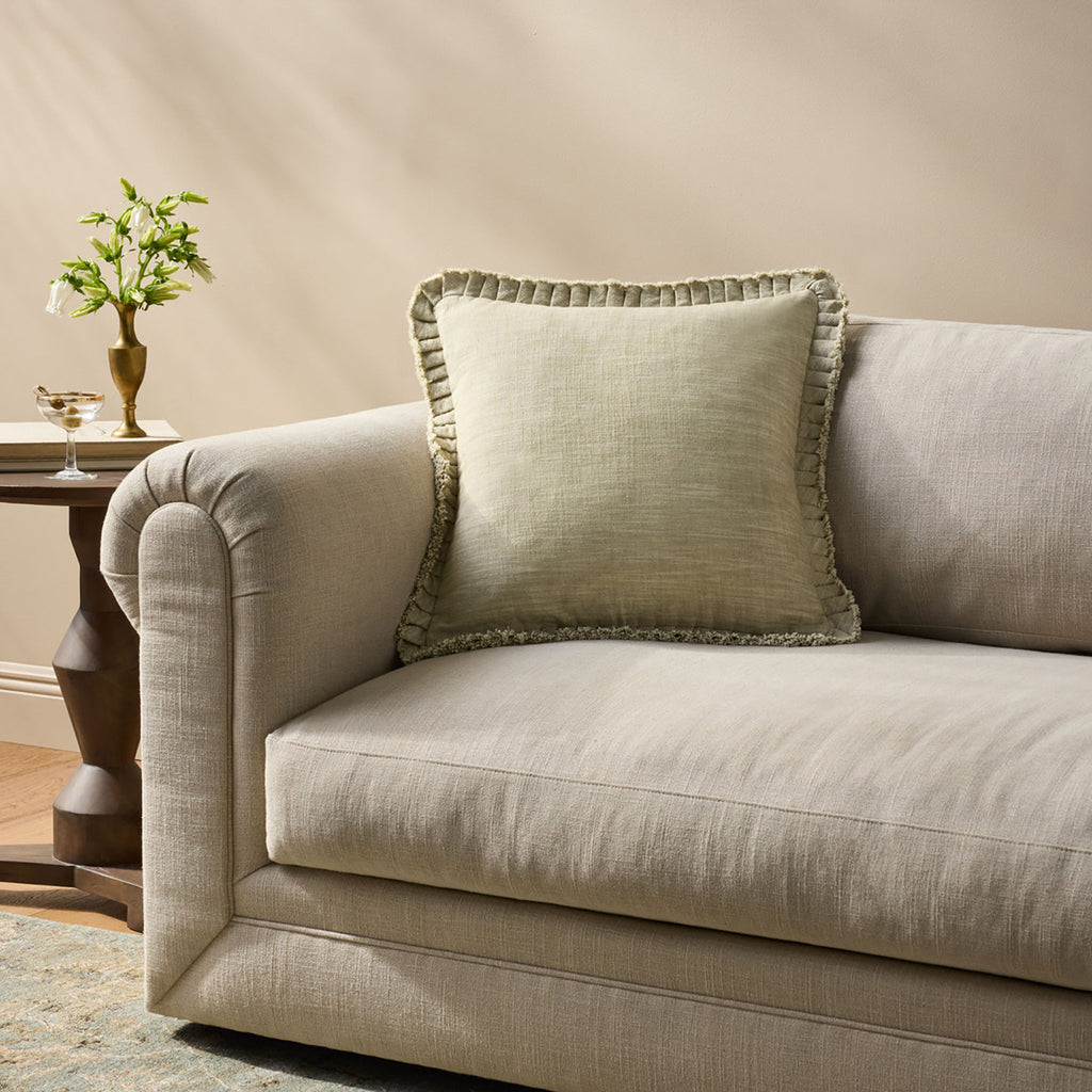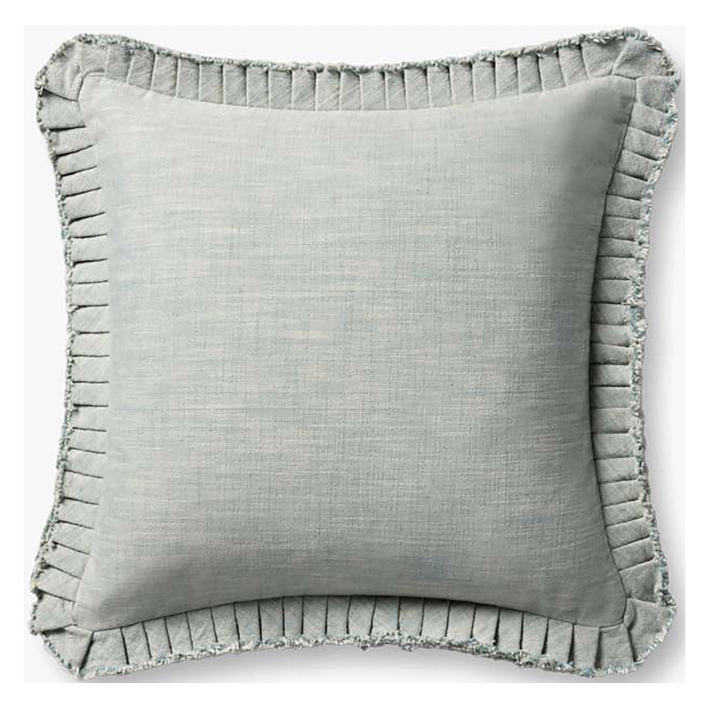 This heathered pale blue throw pillow is finished with pleated, raw-edge flange for a casually refined take on ruffles. The accent pillow is a versatile layering piece for living rooms, bedrooms, and more. The 20” x 20” square pillow is made in India of cotton and other fibers.