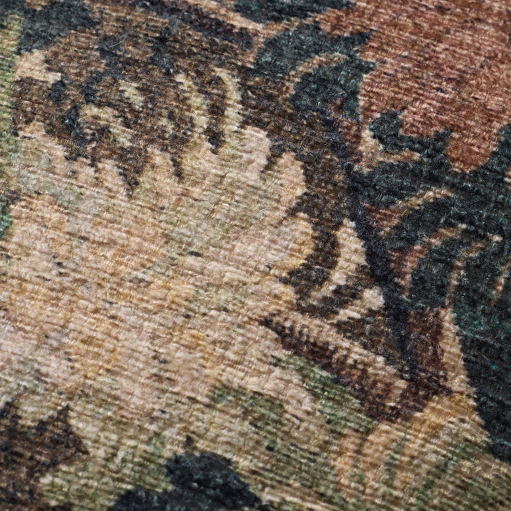 This tapestry-inspired throw pillow adds a romantic elegance to contemporary home decor. The green, forest-patterned accent pillow measures 22” x 22”, a versatile size for living rooms, bedrooms, and more. Woven of easy-to-clean polyester.