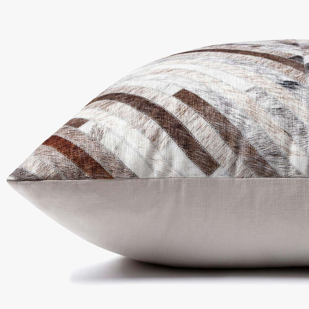 This large faux cowhide floor pillow with a geometric design is a dramatic accent piece or elegant extra seating for your living room decor. The 36"W x 36"D x 6"H pillow is machine-woven of soft polyester.
