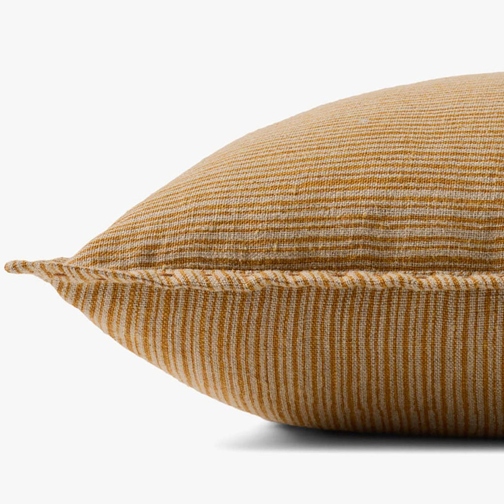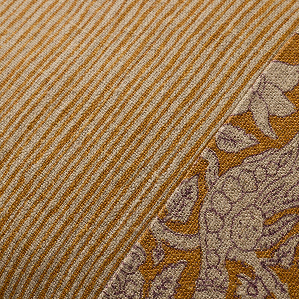 This beautiful linen throw pillow features a mustard yellow floral design based on classic Indian blockprinted fabrics, an elegant accent piece for living rooms, bedrooms, and more. The 18in x 18in square pillow is woven in India of 100% linen and has stitched flange edges.
