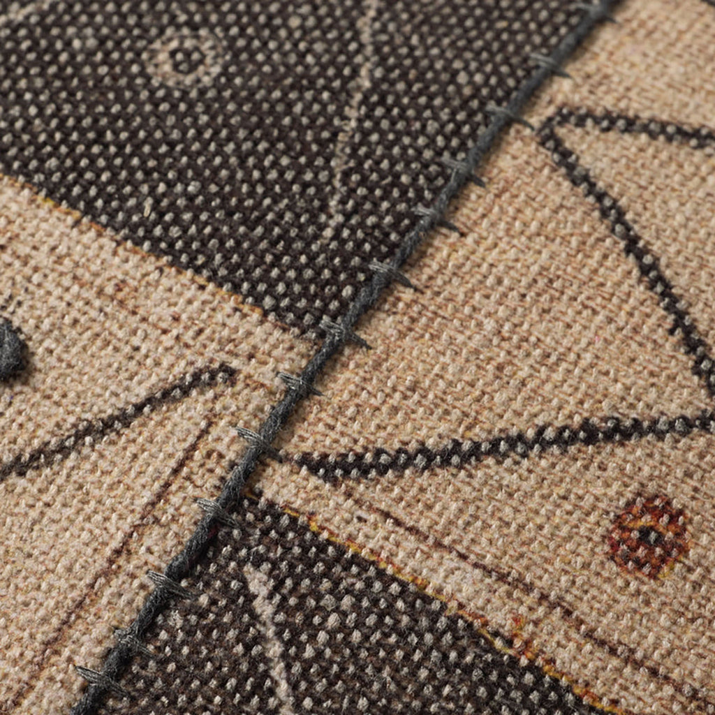This earth-toned throw pillow features a geometric pattern inspired by vintage textile designs, a timeless accent for traditional, farmhouse, or boho home decor, among other classic styles. The pillow is made of polyester, cotton, and rayon in India.