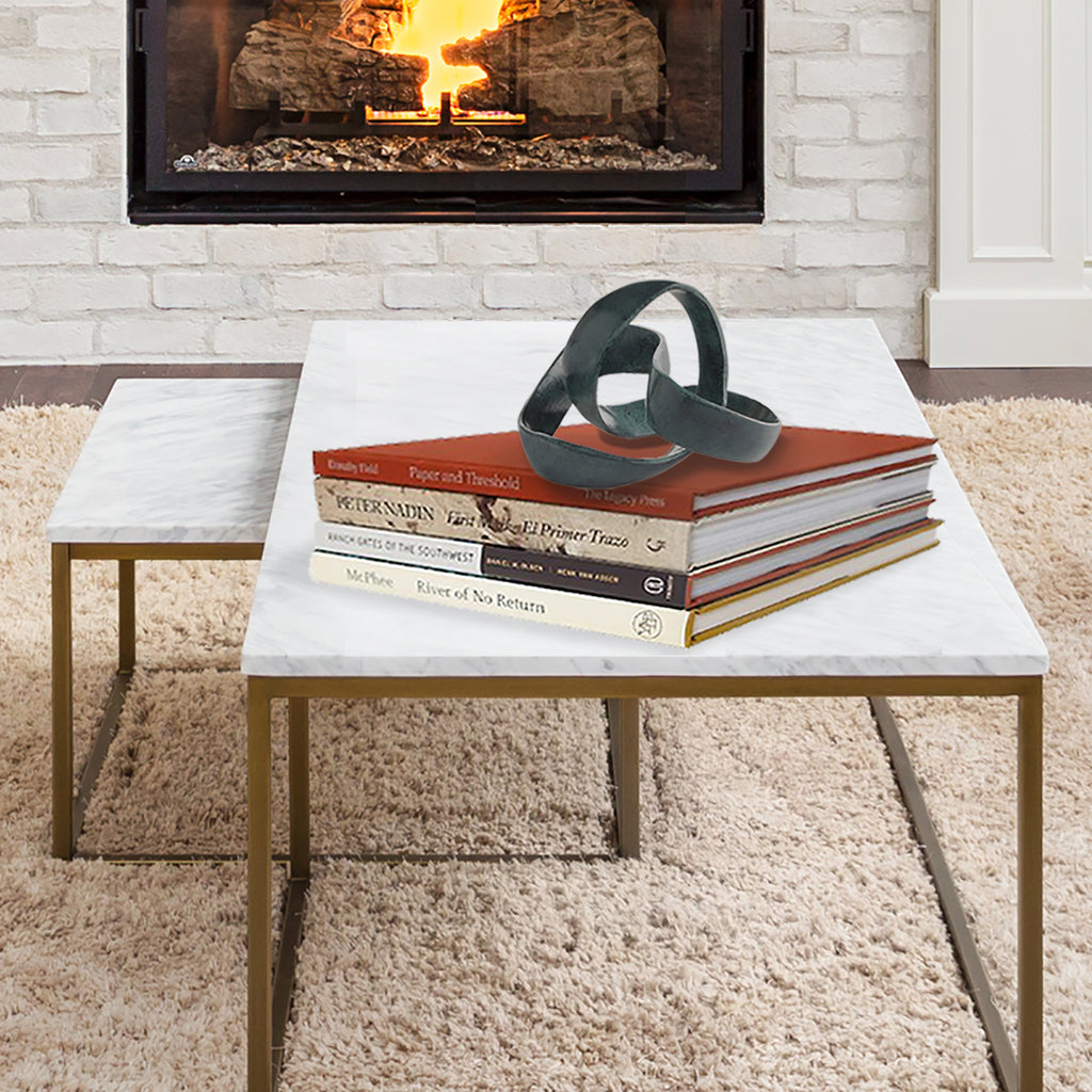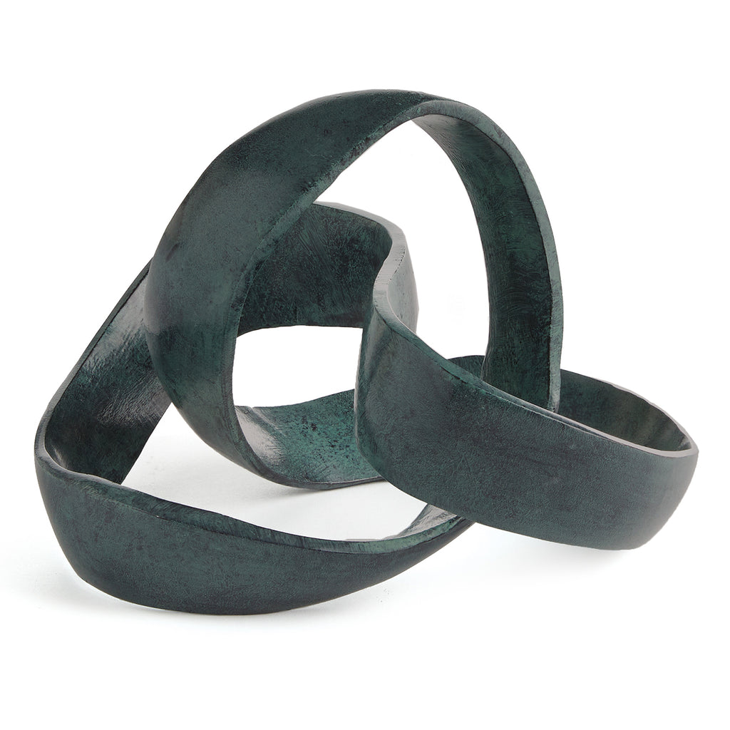 A 3 dimensional interpretation of the simple scribble, the Lorenzo sculpture is inherently organic in feel. With a verdigris patina, strong accent for a bookshelf, ottoman vignette or on a mantel. The bold finishing touch to a clean, modern space.