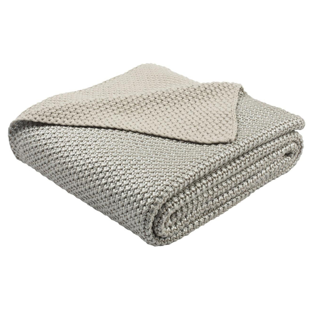 Classic knitting artistry is updated in the refined look and soft, smooth feel of this throw. One side of this versatile accent blanket features shimmering Beige tones, while the other reveals softer hues made of pure cotton. A decor-smart accessory to add subtle radiance and texture to any contemporary styled home decor.