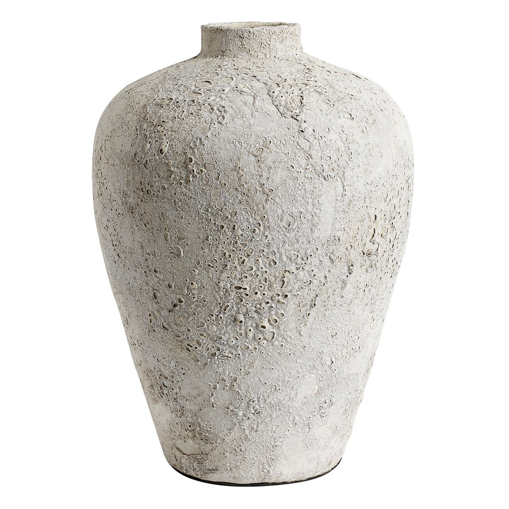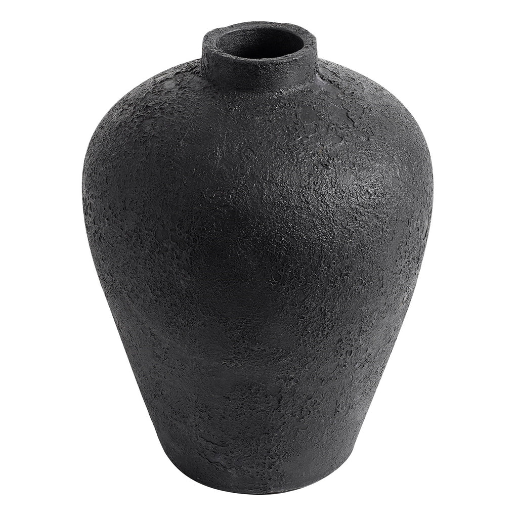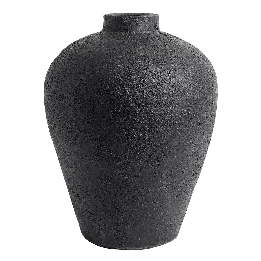 With its organic shape and rough surface, the Luna vase is a piece of unique art. The vase is made of terracotta, then hand painted and burned with a gas burner, to get the cool, crater-like effect in the glaze.