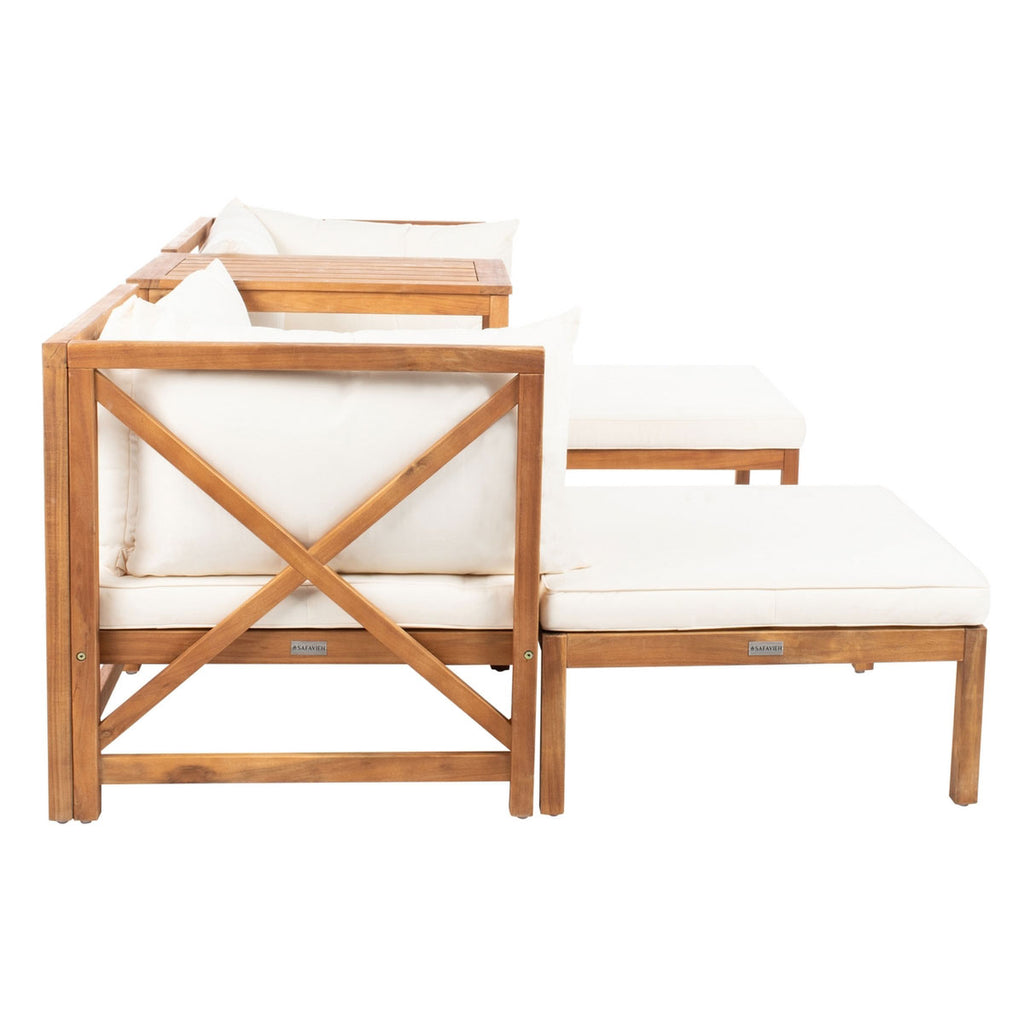 The surefire remedy for too much reality, this 5-piece sectional set is a comfortable oasis away from it all. With comfort soft cushions, versatile ottomans that double as extra seating, and a handy table for all your requisite refreshments, this outdoor sectional is resort outdoor decor for your staycation spa.