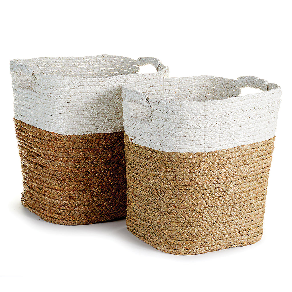 Fashion forward, with mixed weaves, natural materials and enhanced details. Even the rich mi x of colors speak to the fashionista quality these baskets have.