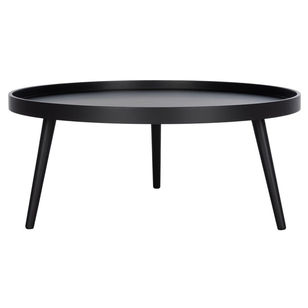 Whether it’s serving canapes and drinks with style or displaying art and decor books, this posh contemporary round tray top coffee table is a design investment. Crafted with luxurious black wood and matte finish, its three retro tripod legs make is a modern classic.