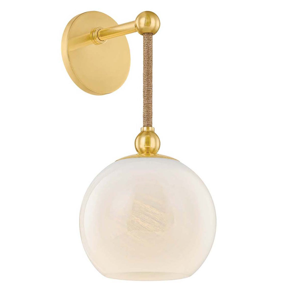 Pairing the wispy artistry of cloud glass with the rough, natural texture of jute rope, the Mitzi Abbie family strikes a balance between delicate and course, earthy and ethereal. While the sconce silhouette is simplified, the pendant recalls a medieval globus cruciger with an Aged Brass cuff encircling its center. The top half of the pendant has a painted finish, adding another layer of interest. Both fixtures exude a sense of antiquity and yet, appeal to modern senses with clean geometry and mixed materiality. Part of our Mandy Cheng collection.