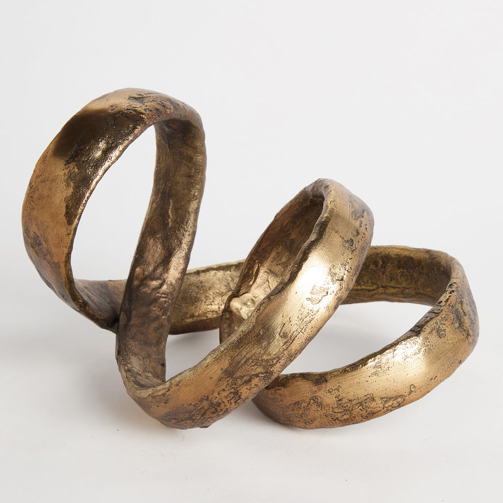 The Marin Sculpture is a decorative home accent designed to elevate your space. Crafted from aluminum, finished in black, it brings texture, warmth, and timeless style to any room. A 3-dimensional interpretation of the simple scribble, the Marin sculpture is inherently organic in feel. With an antique brass finish, a contemporary accent for a bookshelf, ottoman vignette or on a mantel. The bold finishing touch to a clean, modern space.