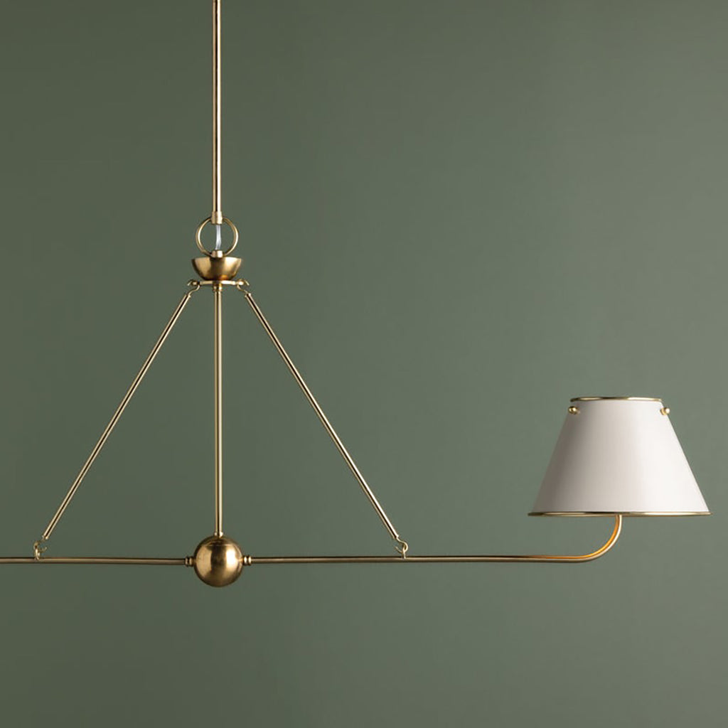 The Mark D. Sikes x Hudson Valley Lighting Burghley family channels a tailored aesthetic with clean lines and sleek metal shades. Featuring Mark D. Sikes’ signature brass ball detail as well as stylish bolts securing the shades, Burghley makes heritage-inspired silhouettes feel fresh. In either Aged Brass and Off White or Aged Brass and Distressed Bronze, the 5-light chandelier and 2-light linear bring a sense of understated refinement to both traditional and modern interiors.