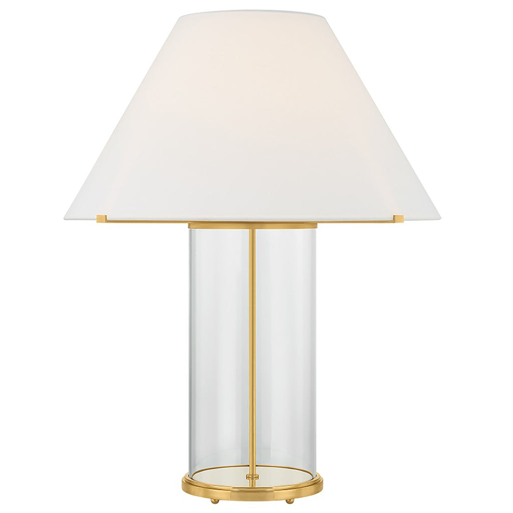A continuation of the crowd-pleasing Leeds family, the handsome Inglewood lamp features a modern clear glass base and Mark D. Sikes’ signature resting shade. The base beautifully catches the light, as do the timeless Aged Brass accents. Topped with a white linen shade, the design is clean and minimal — capable of being used in a variety of interior spaces.
