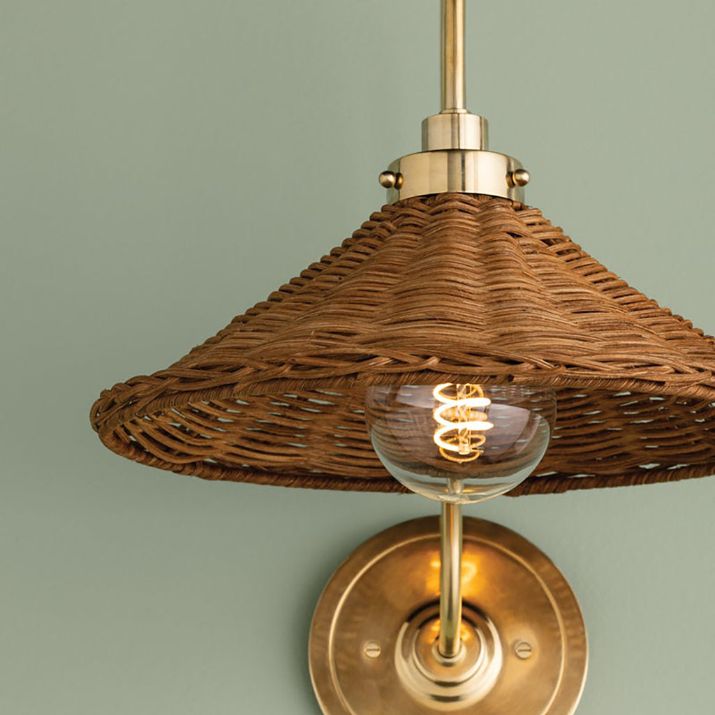 Kensington reimagines Mark D. Sikes’ Clivedon family by introducing the natural beauty of walnut wicker. The heritage feel of these fixtures stems from their artisanal craftsmanship, Aged Brass accents, and classic design details like a slender gooseneck arm. An instant classic, Kensington is designed to be layered with other pieces in the same family. Available as a sconce, pendant in two sizes, and a 5-light chandelier.