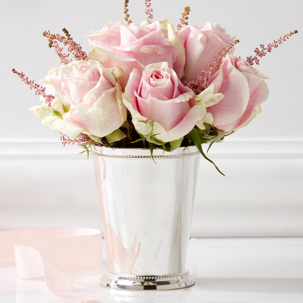 Inspired by classic mint julep cocktail glasses, this silver plated vase prefer to hold your favorite flowers. Each shimmering design features intricate details including three-dimensional dots along the top and bottom.