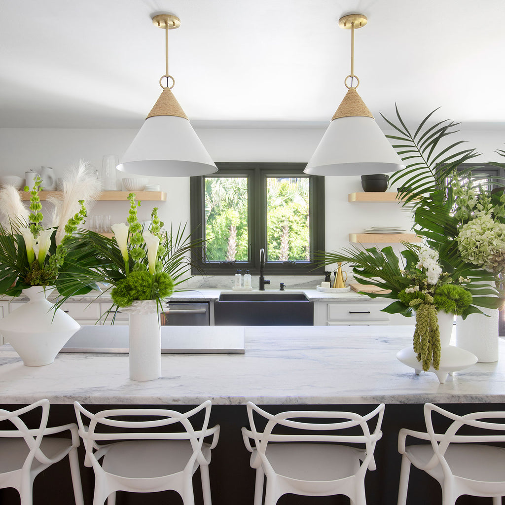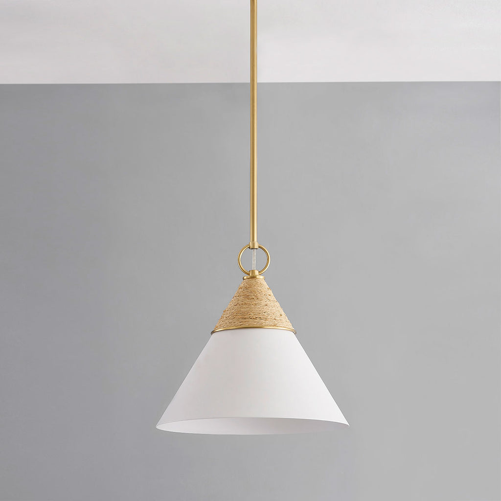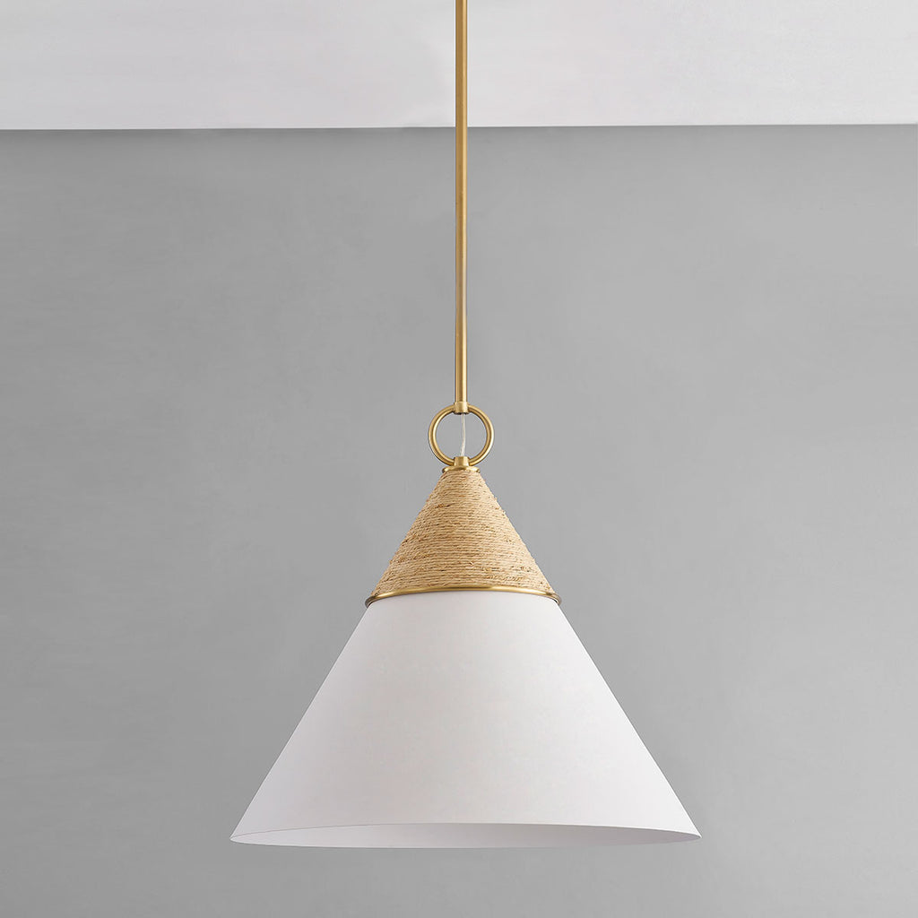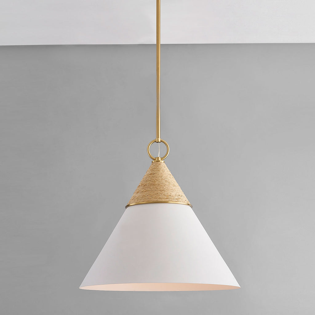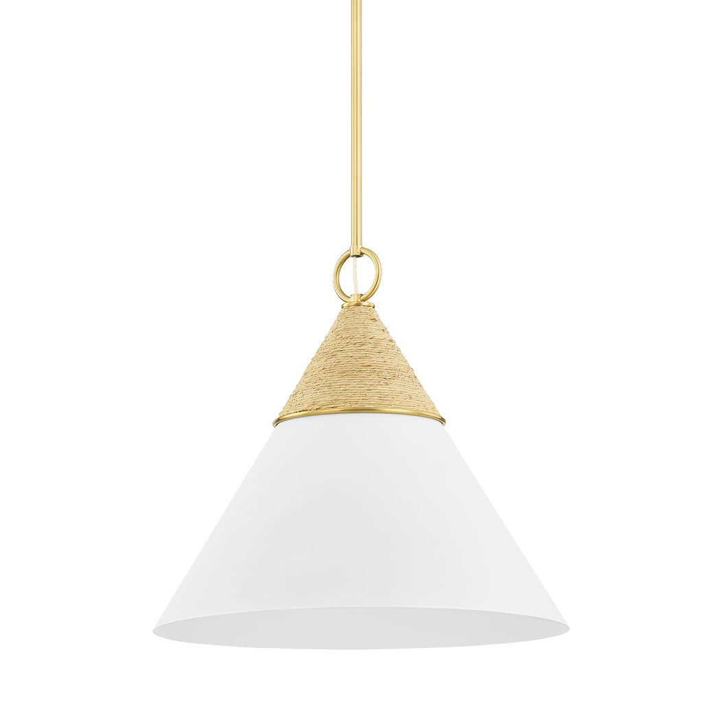 High-quality and exceedingly creative, Mitzi delivers a semi-nostalgic classic lighting collection with streamlined contemporary elements that instantly upgrade your space. A classic cone shape with coastal flair, the Mitzi Mica pendant features a raffia-wrapped, textured white shade accented by beautiful Aged Brass for a casual yet sophisticated aesthetic. Add personality to a powder room with sconces, or highlight the heart of the home with a pair of pendants over your kitchen island. Part of the Megan Molten x Mitzi Tastemakers collection.