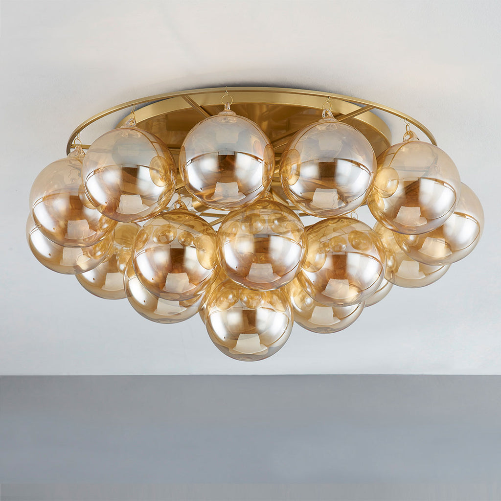 High-quality and exceedingly creative, Mitzi delivers a semi-nostalgic classic lighting collection with streamlined contemporary elements that instantly upgrade your space. Gorgeous plated champagne glass globes are clustered around an elegant Aged Brass frame to create the Mitzi Mimi flush ceiling mount that is equally showstopping as it is light and airy. Whether you’re dressing up a breakfast nook with the small chandelier, adding a soft glow to an entryway with the flush mount, or adding a touch of coastal glam to your bedroom or dining room with the large chandelier, the possibilities are endless! Part of the Megan Molten x Mitzi Tastemakers collection.