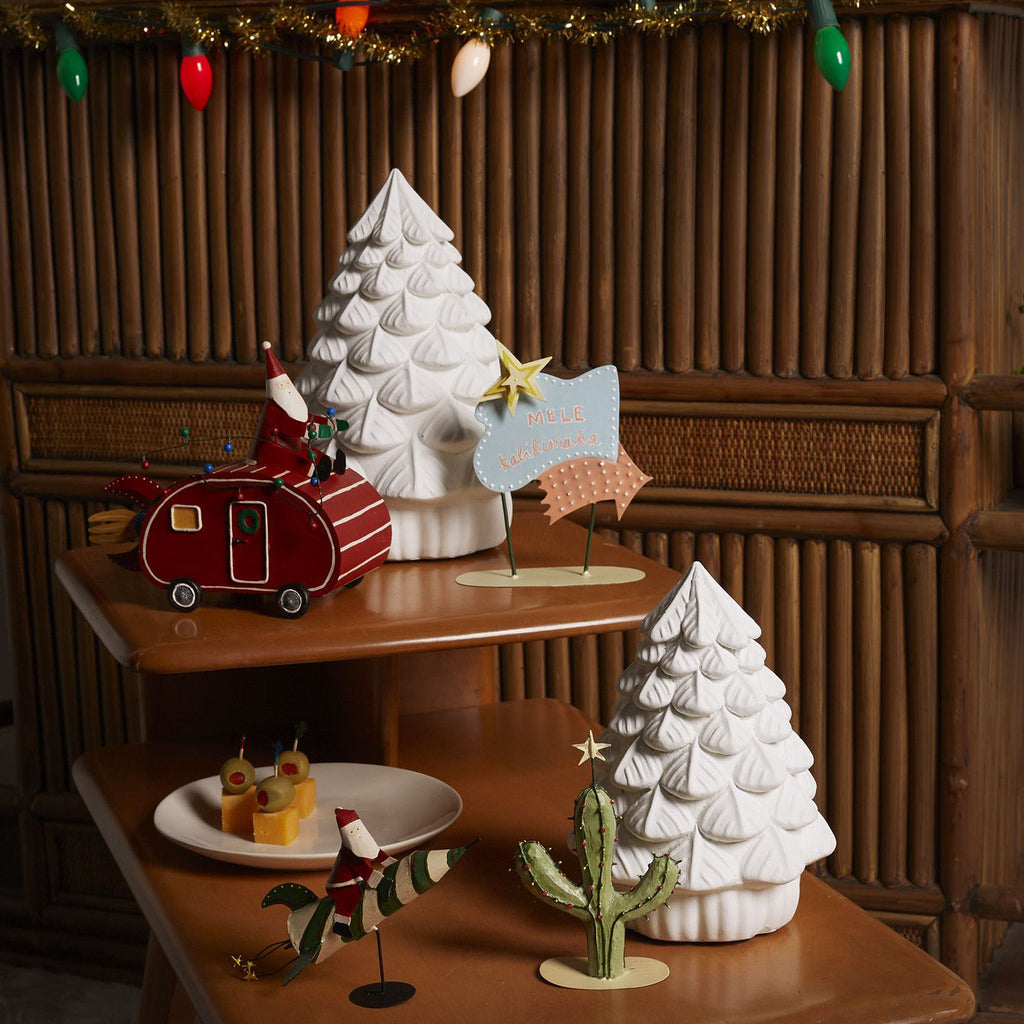 All is merry and bright with the Merry Little Christmas Tree, a white ceramic tree with scalloped boughs and wide trunk. Meringue-like layers give the effect of snow covered branches in winter white.