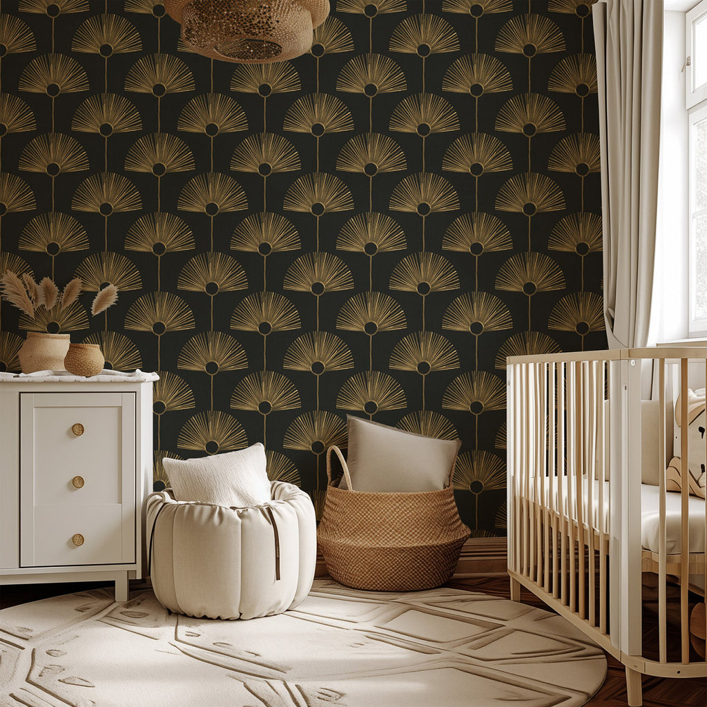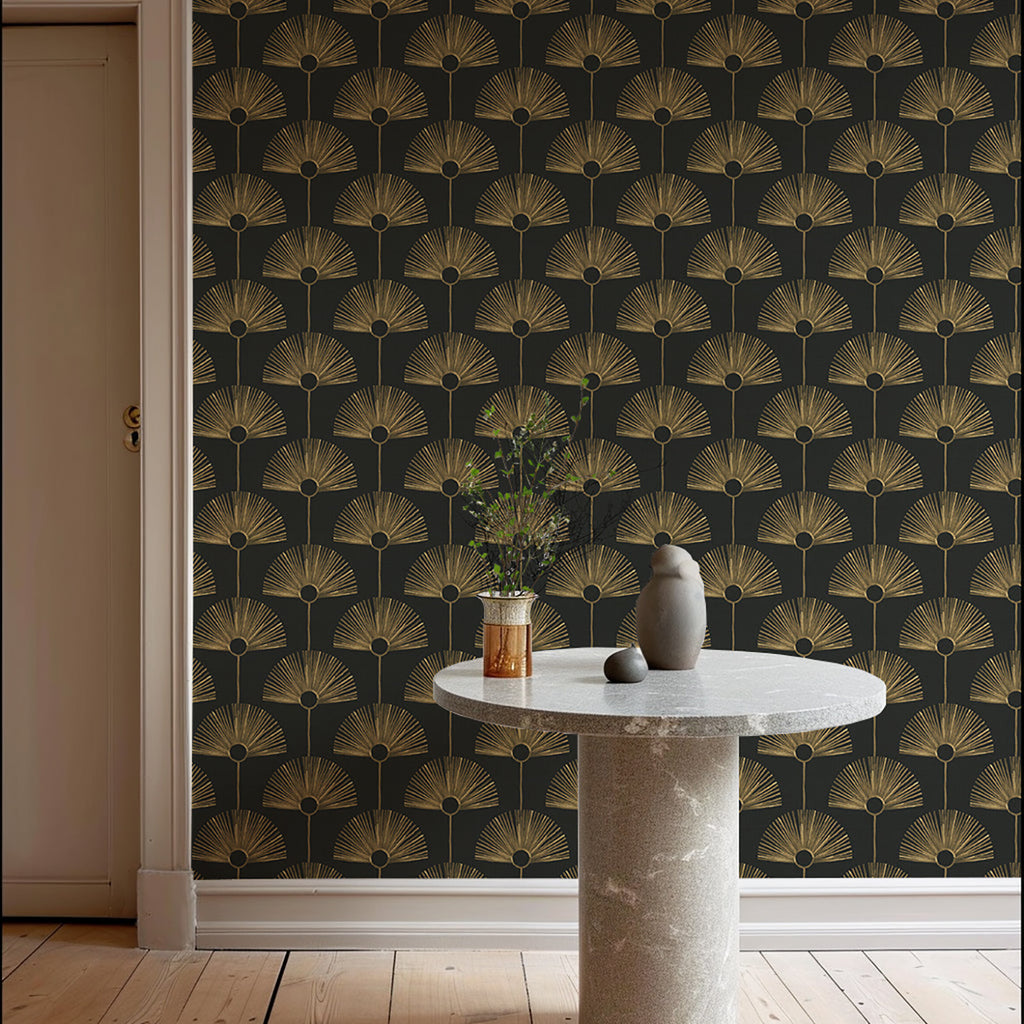 Mitchell Black Deco Fan Grasscloth Wallpaper