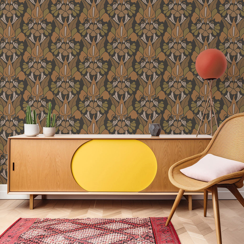 Mitchell Black Dragon Flower Wallpaper