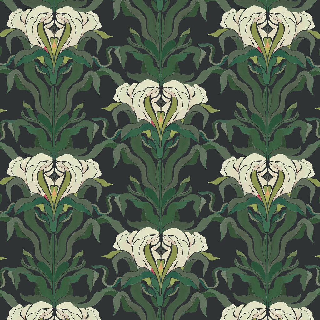 Mitchell Black Mirrored Flower Wallpaper
