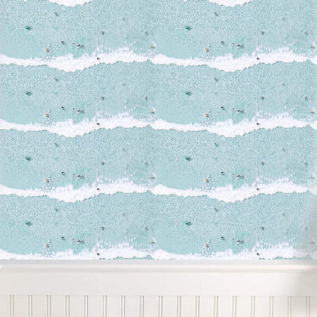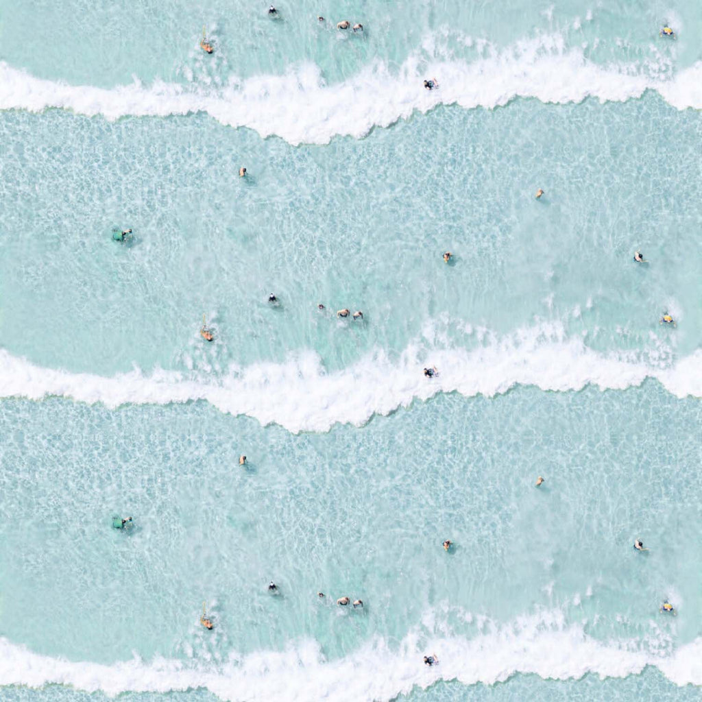 Cascading pastel blue ocean waves dotted with scattered bodysurfers form the Ocean Swimmers pattern, photographed over the stunning waters of Hawaii. Featuring four of Malin's aerial photography images, the collection draws inspiration from coastal images ranging from the Australian coast to the Italian Riviera. Mitchell Black designer wallpaper is made to order at their Chicago based art studio.