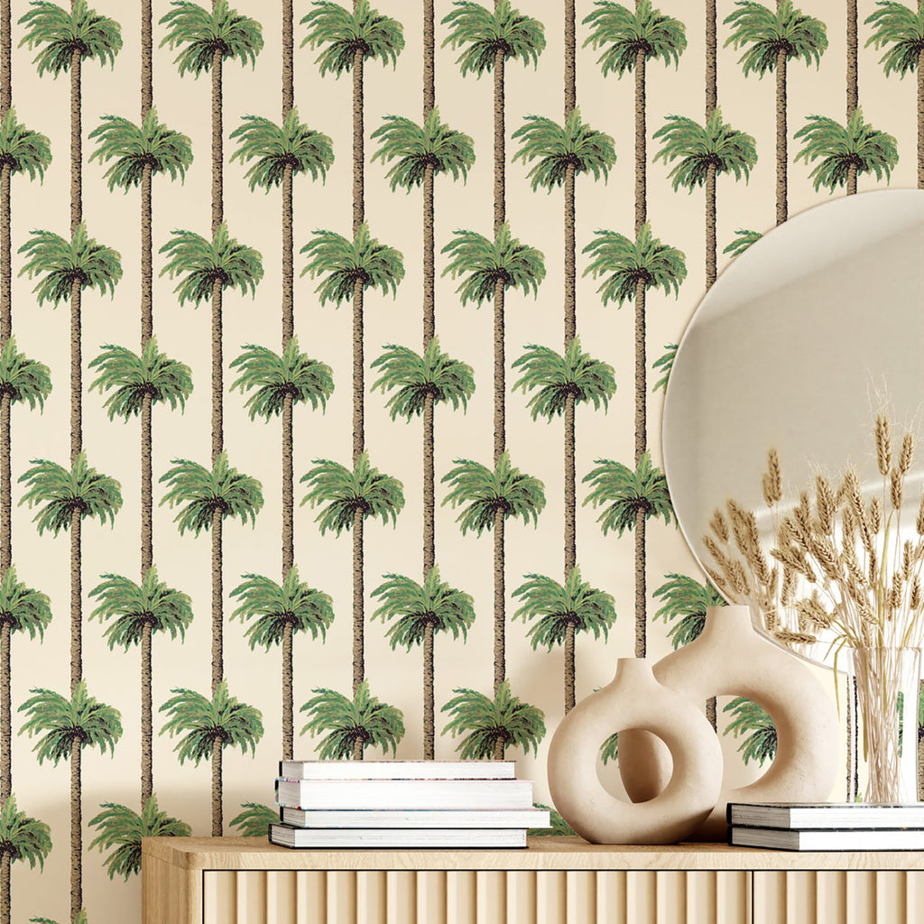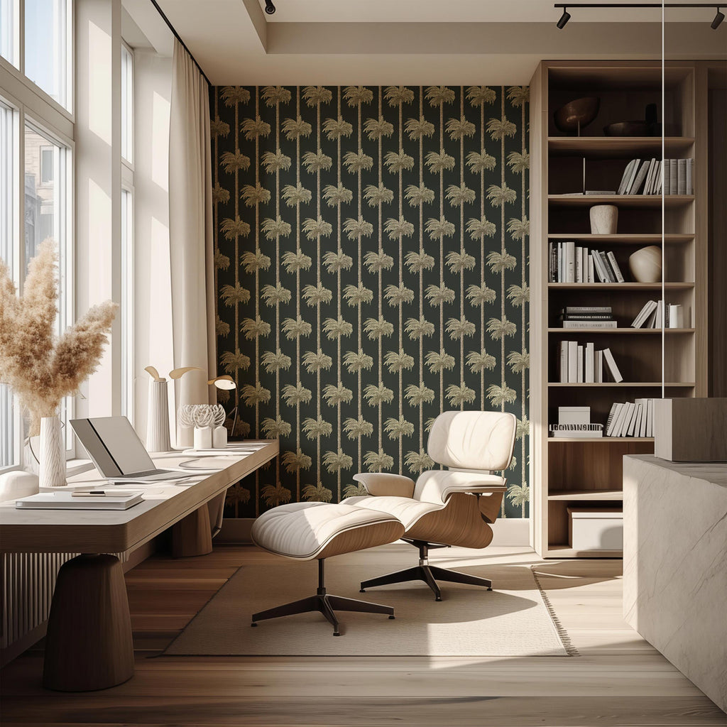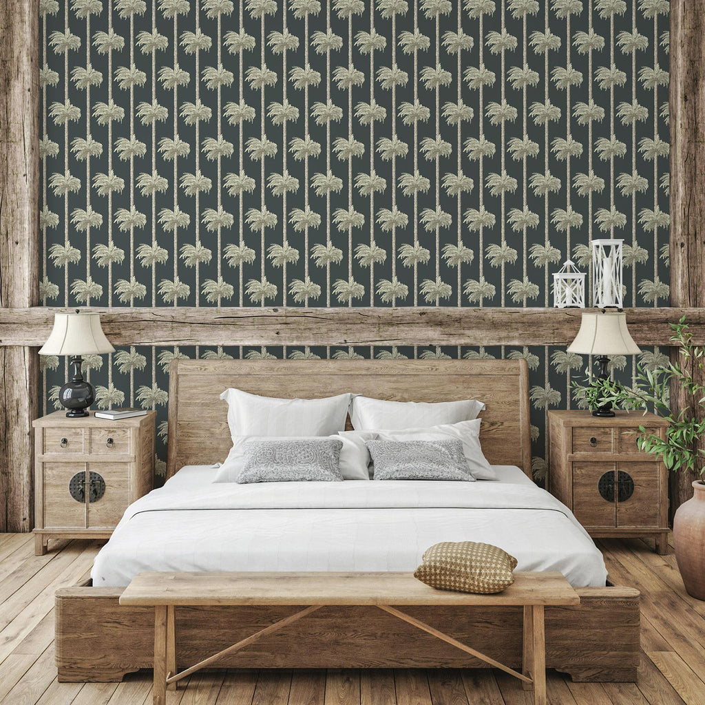 Mitchell Black Retro Tiki Palm Trees Wallpaper