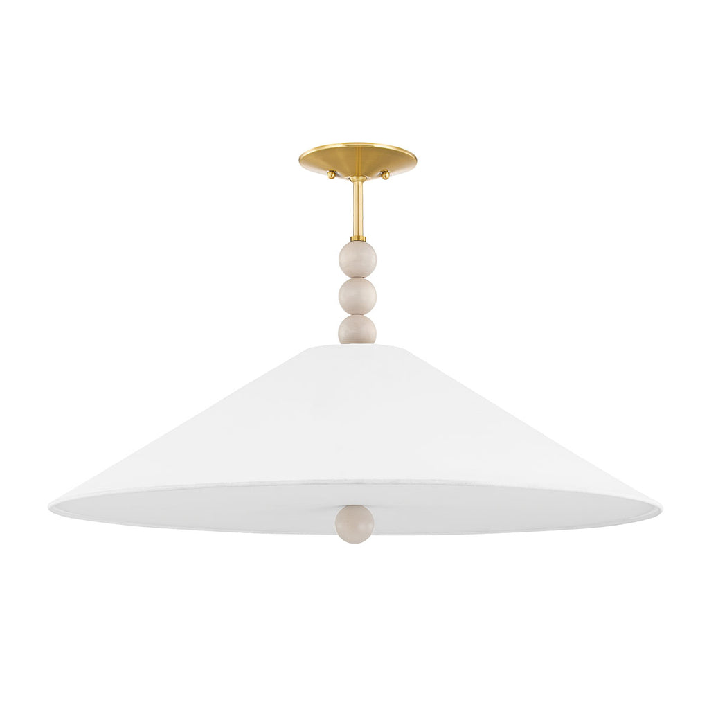 High-quality and exceedingly creative, Mitzi delivers a semi-nostalgic classic lighting collection with streamlined contemporary elements that instantly upgrade your space. Suspended from the ceiling, pendant lighting by Mitzi offers extra light expression exactly where you need it with a functional high-design feel. Alexis reimagines a traditional American design detail. Inspired by vintage bobbin furniture pieces, wooden spheres of whitewash ash decorate a white linen shade from both above and below, creating the illusion that they pierce through the shade. Natural elements and a simple silhouette make this pretty pendant a welcome addition to any space.