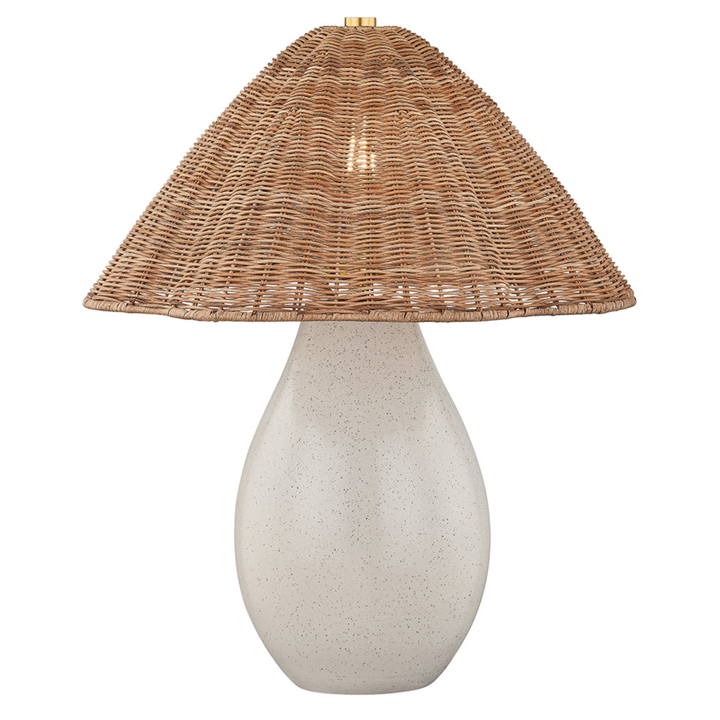Mitzi Deanne reinterprets a classic mushroom silhouette with soft curves and mixed materiality. Finished in a Creamy Oat glaze, the voluminous ceramic base grounds the design with a hand-sculpted feel. The dome-shaped, scalloped wicker shade brings an airy, tactile contrast. A glint of Aged Brass at the neck unites the earthy elements with a note of polish.