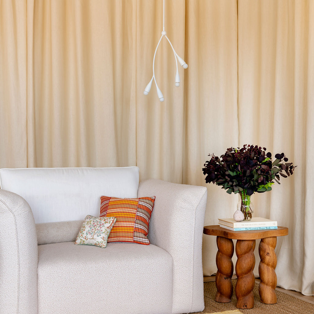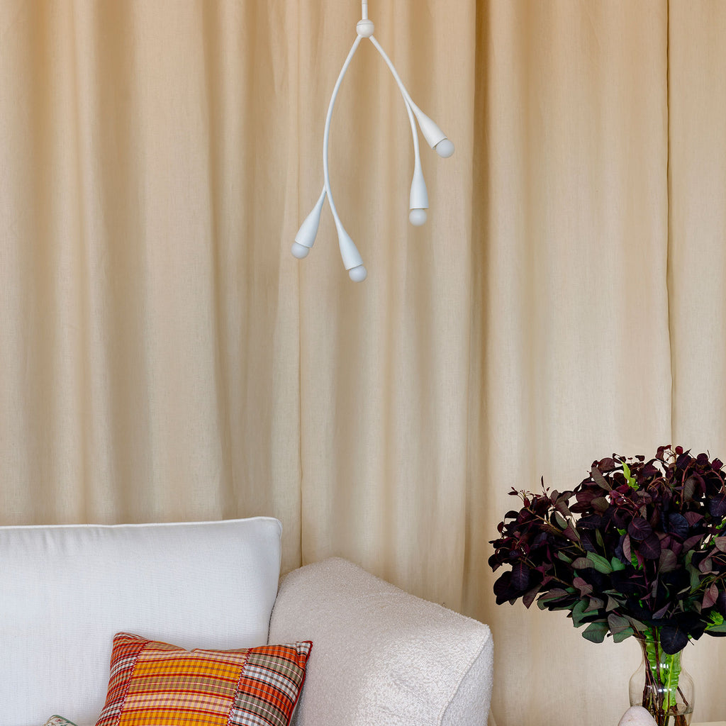 High-quality and exceedingly creative, Mitzi delivers a semi-nostalgic classic lighting collection with streamlined contemporary elements that instantly upgrade your space. Bursting with style, the Mitzi Elsa pendant draws inspiration from cherry blossom trees. Slender arms branch out from small spheres, ending in buds of petite matte white globes. This soothing, organic design is available as a wall sconce, pendant, linear, and chandelier in Gold Leaf and Textured White. For the best look, G16.5 incandescent matte white finish bulbs are recommended.