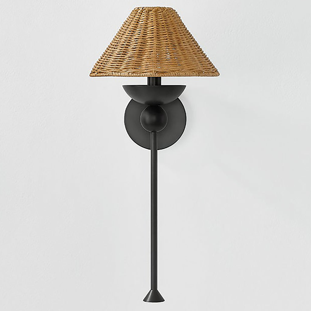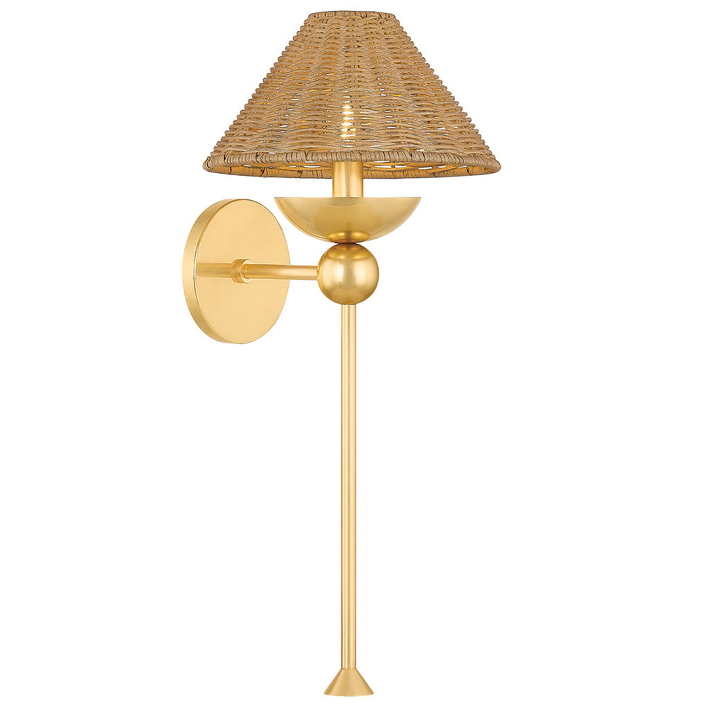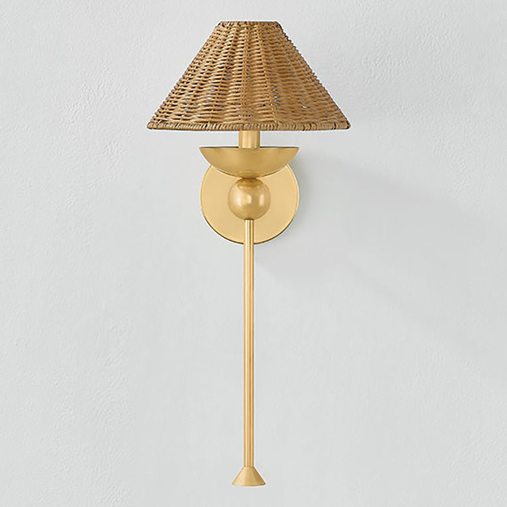 Playing with shapes, texture, and light, MItzi Perilla creates modern geometries from a surprising mixture of materials. The elongated frame supports stacked forms that culminate in a textural wicker rattan shade. Decorative sphere details add an artisanal touch to the design. Mitzi Perilla is available as a pendant, table lamp, or wall sconce in two finishes, Aged Brass and Old Bronze. Part of our Dabito x Mitzi Tastemakers collection. *Due to the one-of-a-kind nature of the medium, exact colors and patterns may vary slightly from the image shown.