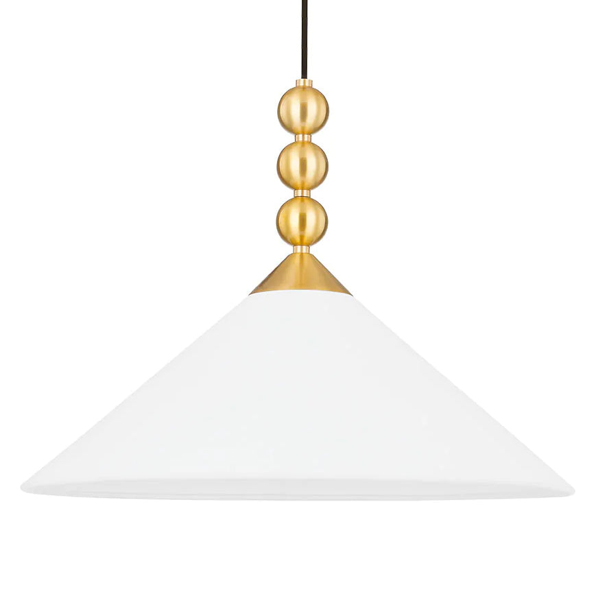 High-quality and exceedingly creative, Mitzi delivers a semi-nostalgic classic lighting collection with streamlined contemporary elements that instantly upgrade your space. Sang is jewelry-inspired lighting at its finest. The sleek, curved arms and decorative gold balls, both solo and in groups of three, give the overall silhouette a definite drop earring vibe. Finished in aged brass with a white linen shade and available as a pendant, wall sconce or floor lamp, there's a Sang to accessorize every room.