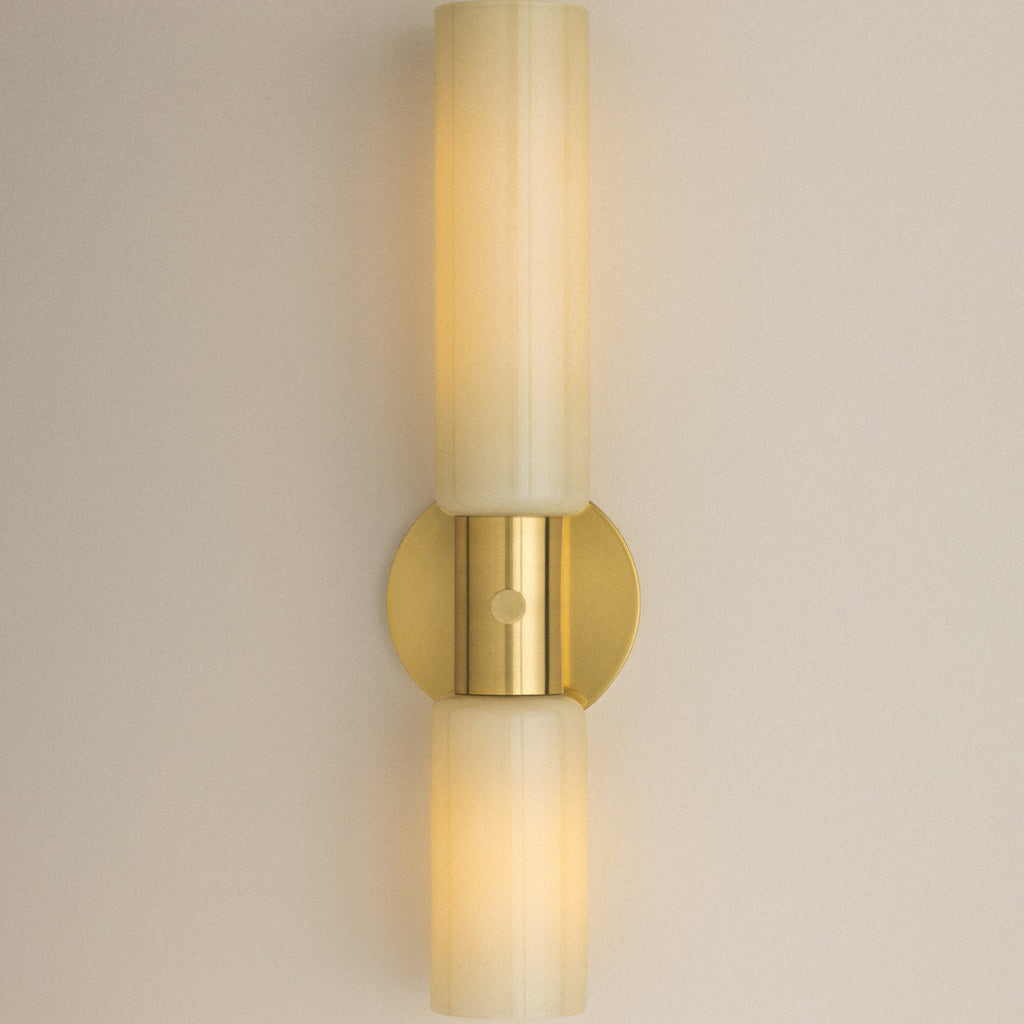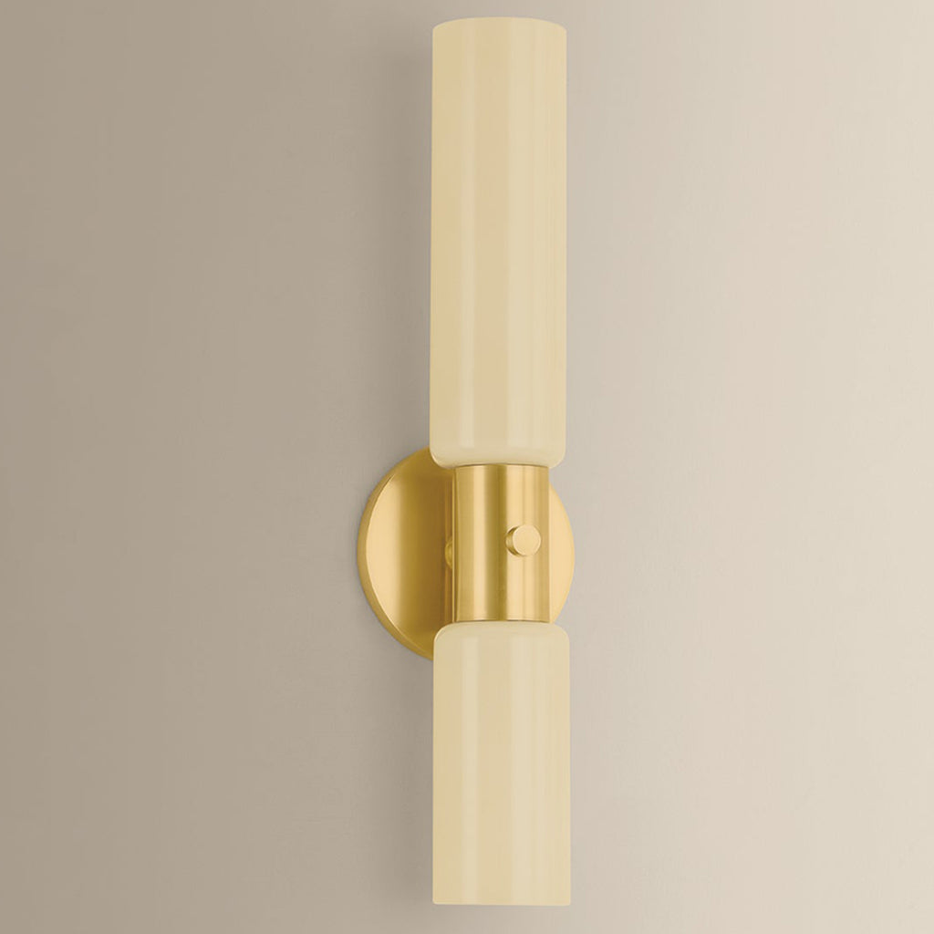 Defined by clean design and sculptural symmetry, the Mitzi Violetta sconce balances linearity with artistry. Two cream opal glass shades are stacked, divided by a slim Aged Brass band that introduces a moment of contrast. With restrained geometry, Violetta makes a confident statement on the wall.