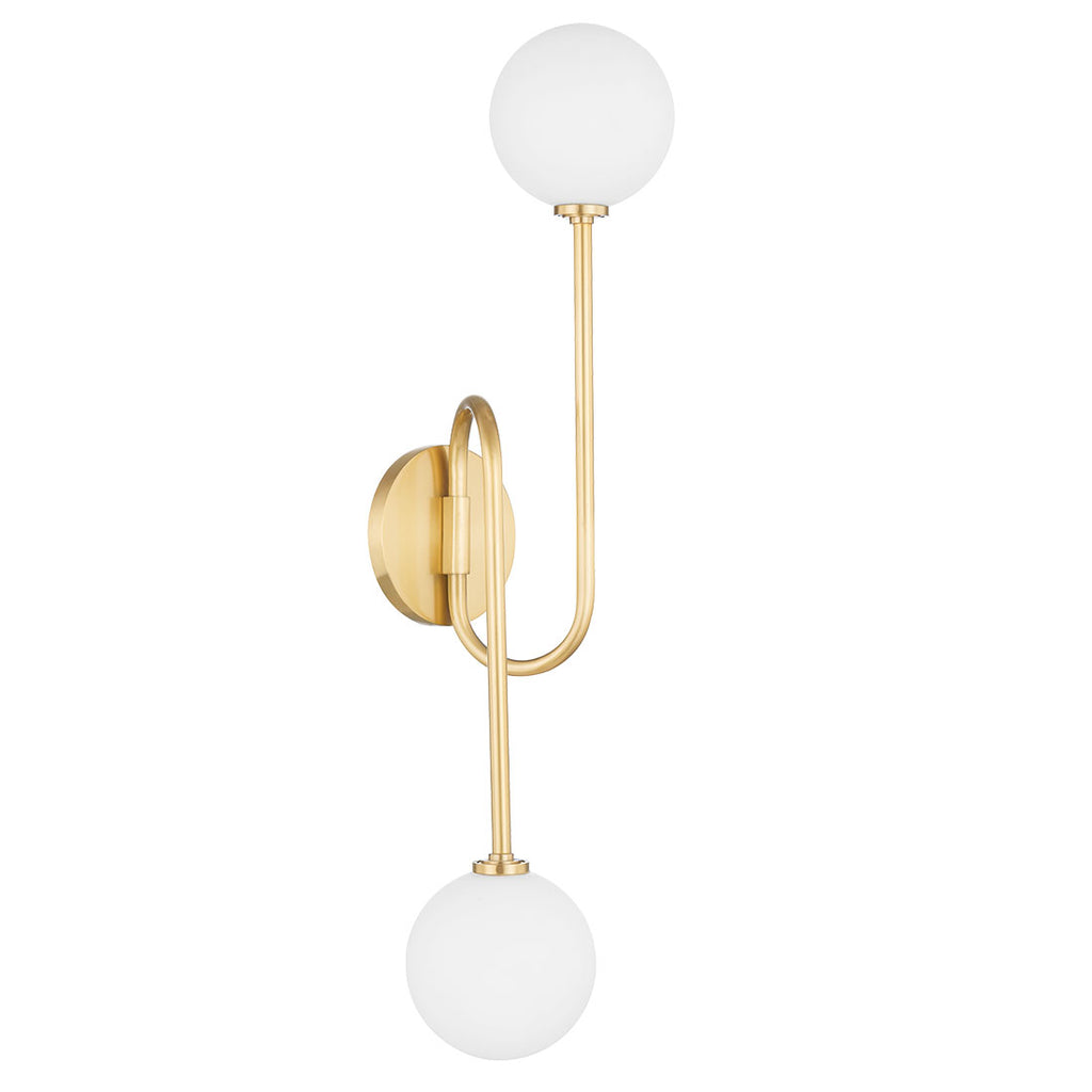 High-quality and exceedingly creative, Mitzi delivers a semi-nostalgic classic lighting collection with streamlined contemporary elements that instantly upgrade your space. Inspired by 1940s industrialism and reminiscent of an urban subway map, Zani is a classic globe sconce with a literal twist. Curved arms flow from a circular backplate and hold the globes up or down, casting light in both directions and giving the piece a feeling of fluidity. Choose from clear glass bulbs for bright, clean light or opt for opal glass for a more refined look.